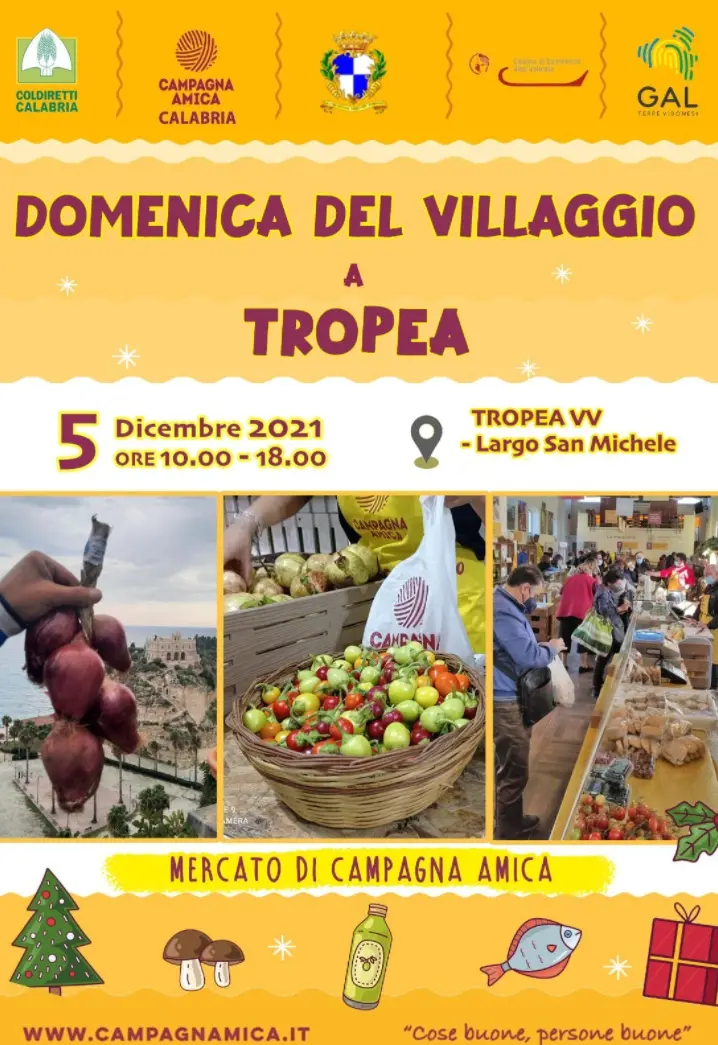 Domenica 5 dicembre a partire dalle ore 10.00 e fino alle 18.00, il Comune di Tropea, Camera di Commercio di Vibo Valentia, Gal Terre Vibonesi, Coldiretti e Campagna Amica Calabria, daranno il via all’evento denominato “La domenica del villaggio”.