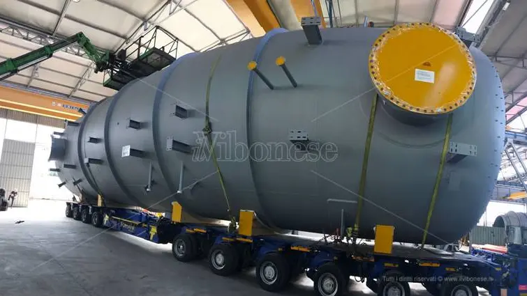 Quando all’alba di giovedì arriverà al porto, ci saranno voluti 2 giorni per percorrere poco più di 20 chilometri, cioè la distanza che separa l’area industriale di Rombiolo da Vibo Marina. Un percorso lastricato di burocrazia e di difficoltà tecniche che hanno messo a dura prova una commessa da milioni di euro, quella relativa alla costruzione del più grande serbatoio a pressione mai realizzato in Calabria e destinato a un complesso industriale in Siberia.