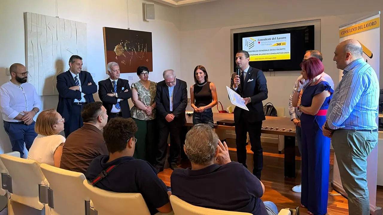 «Un momento significativo dell’assemblea è stato dedicato all’Asse.co., la certificazione di conformità contributiva e retributiva dei rapporti di lavoro che può essere rilasciata esclusivamente dai Consulenti del Lavoro, e alla nuova piattaforma VERA, operativa dallo scorso 24 giugno. Sviluppata dall’INPS in collaborazione con il Consiglio Nazionale dei Consulenti del Lavoro, VERA rappresenta un’innovazione epocale nella gestione del DURC, semplificando notevolmente il lavoro della nostra categoria e migliorando il servizio offerto ai clienti». Al termine dell’assemblea, sono stati premiati Rosario Rubino e Raffaele Marcello rispettivamente per i loro 50 e 25 anni di iscrizione all’Ordine, ai quali è stata consegnata una targa celebrativa. Accolti inoltre i nuovi iscritti all’Ordine con la consegna dell’attestato di iscrizione, del Codice deontologico e della spilletta che riproduce il logo dell’Ordine.