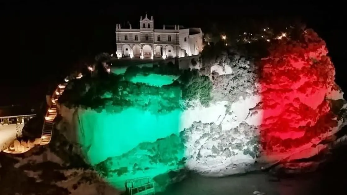 Lo scoglio dell’Isola con i colori del Tricolore. In questo clima di festa s’inserisce l’iniziativa di Tropea. Lo scoglio dell’Isola, sul quale sorge il suggestivo santuario simbolo della Perla del Tirreno nel mondo, viene illuminato con i colori del Tricolore. Fasci di luce disegnano così, nelle calde notti estive, la bandiera dell’Italia. Uno spettacolo suggestivo per eventi sportivi che uniscono il Paese da Nord a Sud. Nell’omaggio di Tropea, tutto l’orgoglio italiano per un appuntamento e una vittoria – nel caso di Euro 2021 – attesa da 53 anni dopo le delusioni del 2000 e del 2012.