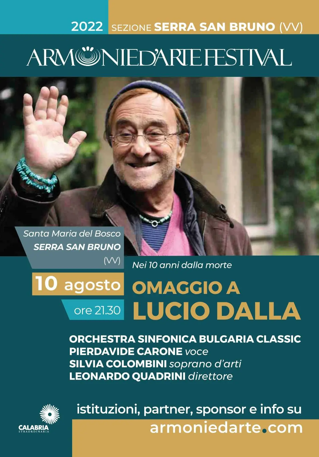 Tre serate ricche di musica e talento, nel suggestivo scenario di Santa Maria del Bosco a Serra San Bruno: Armonie d’Arte Festival traccia nuove rotte mediterranee, portando la narrazione dei “transiti”, tema della 22esima edizione, nella fascia centrale della Calabria. Serra San Bruno, dunque, come tappa del passaggio normanno e luogo ricco di spiritualità e natura, per fare da cornice a tre eventi capaci di coniugare differenti stili musicali. Si partirà il 10 agosto, la notte delle stelle, con un omaggio a Lucio Dalla nel decennale della scomparsa: sarà Pierdavide Carone, che con Dalla ha condiviso l’esperienza al festival di Sanremo nel 2012, a rivisitare in chiave sinfonica il repertorio del grande artista bolognese. Accanto a lui la soprano d’arti Silvia Colombini, mentre gli spartiti saranno affidati all’orchestra sinfonica Bulgaria Classic diretta dal maestro Leonardo Quadrini. [Continua in basso]