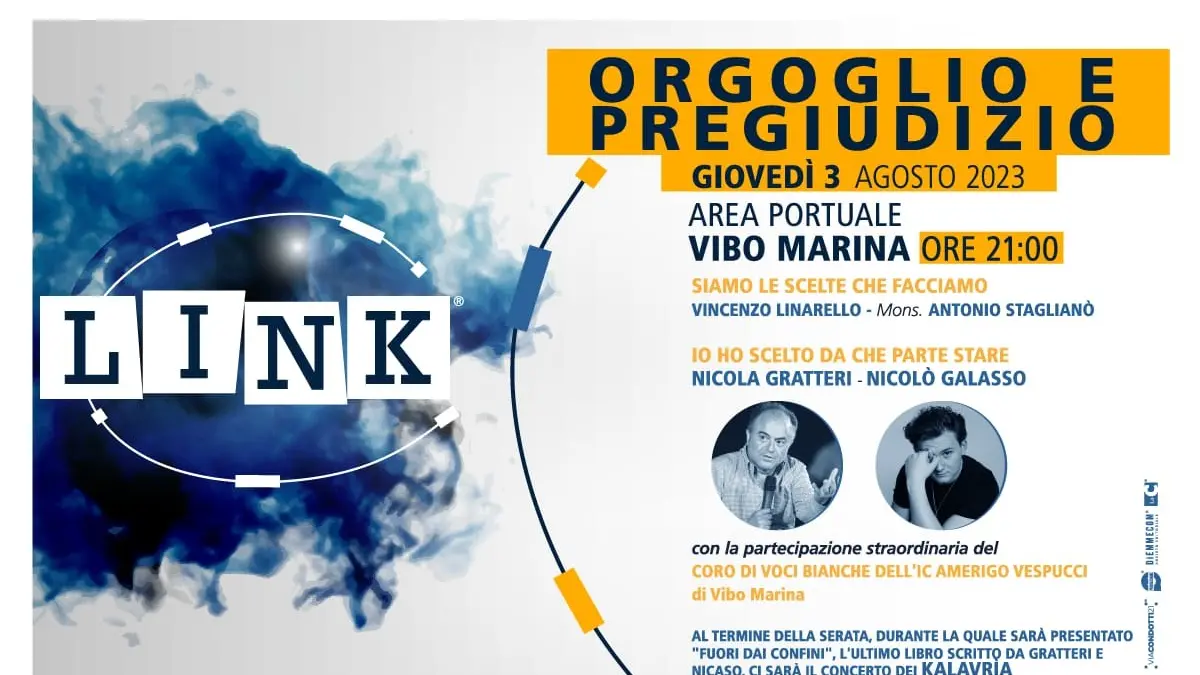 Mancano pochissime ore e si alzerà il sipario del secondo evento di Link – Orgoglio e pregiudizio previsto nell’area portuale di Vibo Marina dalle 21 di questa sera, giovedì 3 agosto. La capacità di scegliere, la necessità di farlo, ora più che mai, è il tema che ruota intorno ad una serata, condotta dalle giornaliste Rossella Galati e Patrizia De Napoli, che si preannuncia unica per molteplici ragioni. Sarà Maria Grazia Falduto, direttore generale del gruppo Pubbliemme, ViaCondotti21, Diemmecom, LaC network, a spiegare le ragioni profonde alla base di questa seconda tappa del nostro communication meeting. Un orgoglio che parte dai risultati del nostro network, che saranno sintetizzati dal direttore di rete Franco Cilurzo e dal direttore responsabile Pier Paolo Cambareri. CONTINUA A LEGGERE QUI: Tutto pronto per Link, questa sera il grande evento di LaC nell’area portuale di Vibo Marina