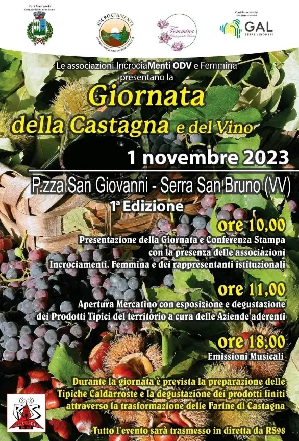 Serra San Bruno pronta a ospitare la “Giornata della castagna e del vino”. L’appuntamento viene promosso dalle associazioni “IncrociaMenti” e “Femmina” con lo «scopo di risaltare le tipicità del comprensorio». L’iniziatica, che si terrà il primo novembre presso piazza San Giovanni, gode del patrocinio del Comune e di Gal, terre vibonesi. La giornata è alla sua prima edizione e punta a offrire momenti di socialità e valorizzazione del territorio di Serra e dei suoi prodotti tipici. L’organizzazione si compone di più fasi: in mattinata, dalle ore 10.00, presentazione della giornata e conferenza stampa con la presenza delle associazioni promotrici e i rappresentanti delle istituzioni locali. Alle ore 11.00, invece, apertura del mercatino con esposizione e degustazione dei prodotti del territorio a cura delle aziende aderenti. Nel tardo pomeriggio, alle ore 18.00, spazio alla musica. Durante la giornata è inoltre prevista la preparazione delle tipiche caldarroste e la degustazione dei prodotti finiti attraverso la trasformazione delle farine di castagna.