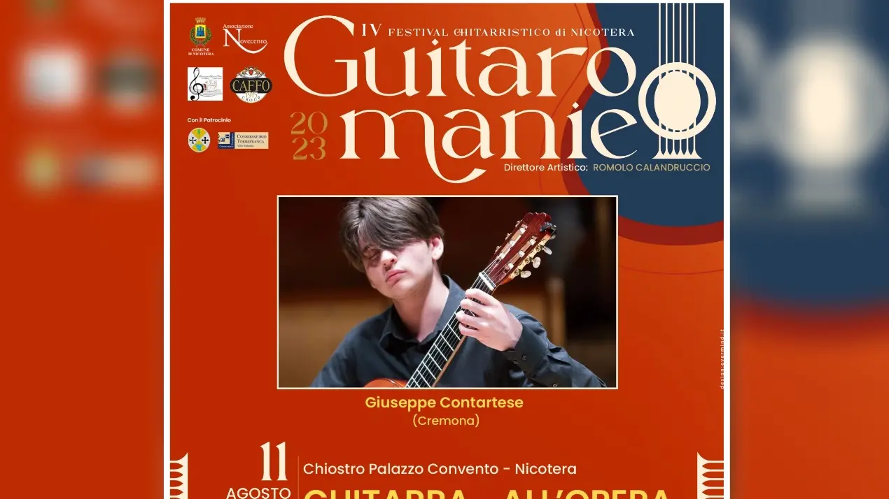 Il terzo appuntamento del Festival chitarristico avrà luogo l’11 agosto alle ore 22.00 presso il Chiostro di Palazzo Convento (Municipio) – Nicotera. Il concerto “Chitarra…all’opera” vedrà come protagonista il musicista Giuseppe Contartese, originario di San Calogero ma da diversi anni vive e studia a Cremona chitarra e composizione. Giuseppe Contartese, pur essendo molto giovane, si presenta con un palmares di tutto rispetto, risulta infatti vincitore di diversi primi premi assoluti in importanti concorsi chitarristi e lo si trova spesso protagonista in molti concerti. Dal titolo del concerto si evince in parte il programma che sarà incentrato prevalentemente su trascrizioni di brani operistici tratti da due capolavori verdiani: La traviata e Il trovatore. Inoltre sono previsti brani che spaziano da Domenico Scarlatti a Francisco Tarrega, Dionisio Aguado fino a Hector Villa Lobos. Il prossimo e quarto appuntamento avrà luogo il 18 agosto nel Chiostro di Palazzo Convento alle ore 22.00 e vedrà come protagonista il chitarrista vibonese Enrico Damiano Vallone.
