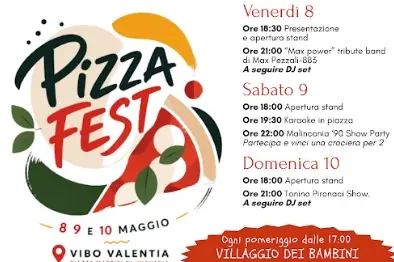 Il Comune di Vibo Valentia annuncia la prima edizione del “Pizza Fest”, una tre giorni dedicata alla pizza, alla socialità e alla valorizzazione delle eccellenze gastronomiche locali. L’iniziativa, sostenuta dall’amministrazione comunale con l’assessorato alla Cultura e al Turismo, animerà il centro cittadino con degustazioni, musica e attività per famiglie e visitatori, nel weekend dell'8, 9 e 10 maggio prossimi.