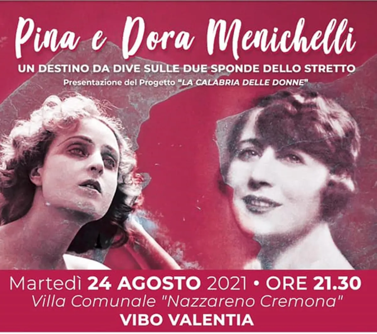 Domani, martedì 24 agosto, è in programma alle ore 21,30 nella Villa Comunale – Nazzareno Cremona di Vibo Valentia, un convegno nell’ambito del progetto “La Sicilia e la Calabria delle donne” (che vede curatrici per la Calabria l’archeologa Mariangela Preta, e per la Sicilia la direttrice del Naxos Legge Fulvia Toscano e la scrittrice Marinella Fiume che sono anche ideatrici del progetto). L’incontro sarà volto a raccontare il particolare destino di due sorelle, entrambe attrici, nate sulle due sponde dello Stretto: Pina e Dora Menichelli, la prima nativa di Castroreale (ME) mentre la seconda nacque a Monteleone di Calabria odierna Vibo Valentia. Inserito nel cartellone estivo di “Vibo Capitale del libro”, con il patrocinio della città di Vibo Valentia, di Naxos Legge e dell’associazione nazionale CulturaIdentità, vedrà protagoniste proprio le donne a partire dal sindaco della città di Vibo Valentia Maria Limardo. E poi prenderanno parte l’assessore del Comune di Castroreale (ME) Mariella Sclafani, la scrittrice Marinella Fiume, la direttrice di Naxos legge Fulvia Toscano, l’archeologa vibonese Mariangela Preta. Il dibattito verrà moderato dalle giornaliste Carmen Bellissimo e Cristina Marra. Alla fine della presentazione verrà proiettato il Film “Il Fuoco” interpretato da Pina Menichelli. [Continua in basso]