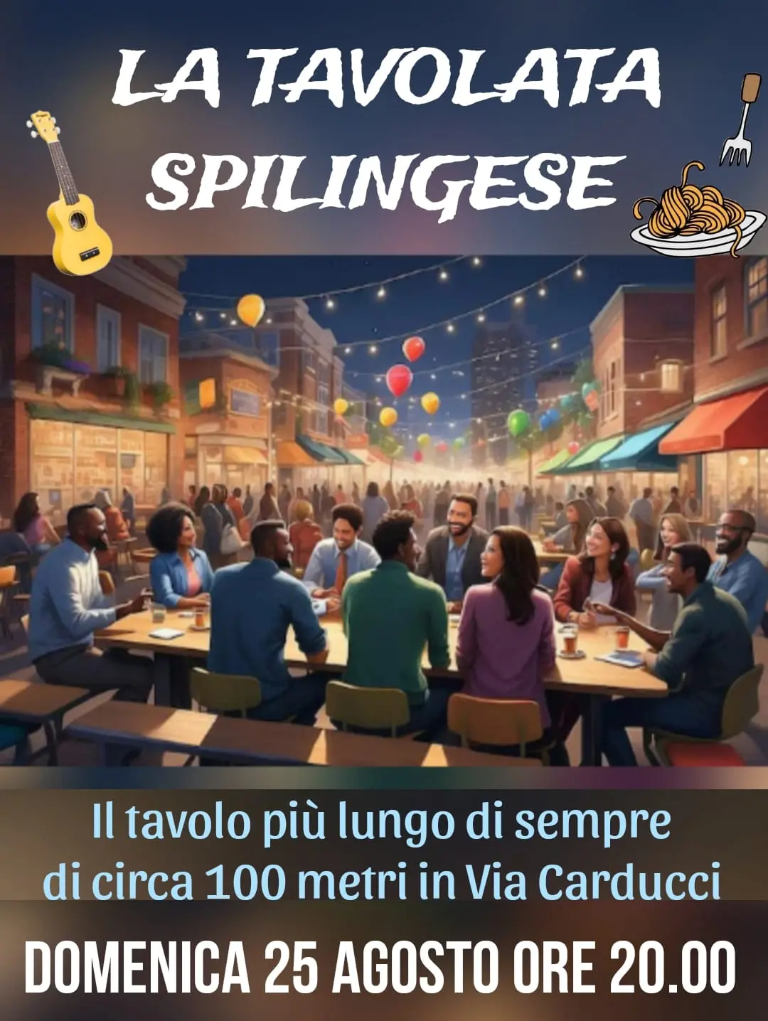 Il Comune di Spilinga e la Pro Loco hanno organizzato per domenica 25 agosto una serata all’insegna della convivialità e delle tradizioni locali con la “Tavolata Spilingese”. Via Carducci sarà dunque allestita con un tavolo lungo circa 100 metri, pronto ad accogliere residenti e visitatori per una serata indimenticabile all’insegna dei sapori spilingesi. L’evento si propone non solo di celebrare il buon cibo, ma anche di creare un momento d’incontro tra le famiglie, le associazioni e i privati cittadini, intrecciando relazioni e rafforzando il senso di comunità. L’idea di una tavolata condivisa nasce dal desiderio di riunire le persone attorno a un’unica tavola, creando un’atmosfera festosa e accogliente.