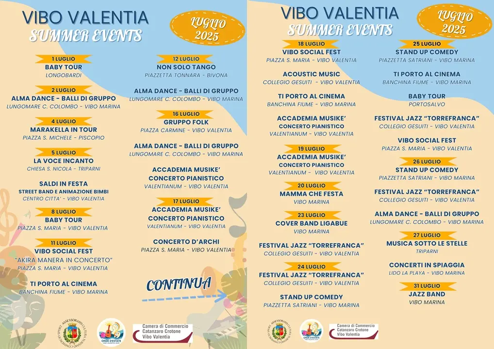L’amministrazione comunale di Vibo Valentia, con l’assessorato alla Cultura e al Turismo, presenta il cartellone di eventi previsto per il mese di luglio nell’ambito della rassegna “Onde d’estate”, che «trasformerà la città in un palcoscenico diffuso di spettacolo, intrattenimento e valorizzazione del territorio».