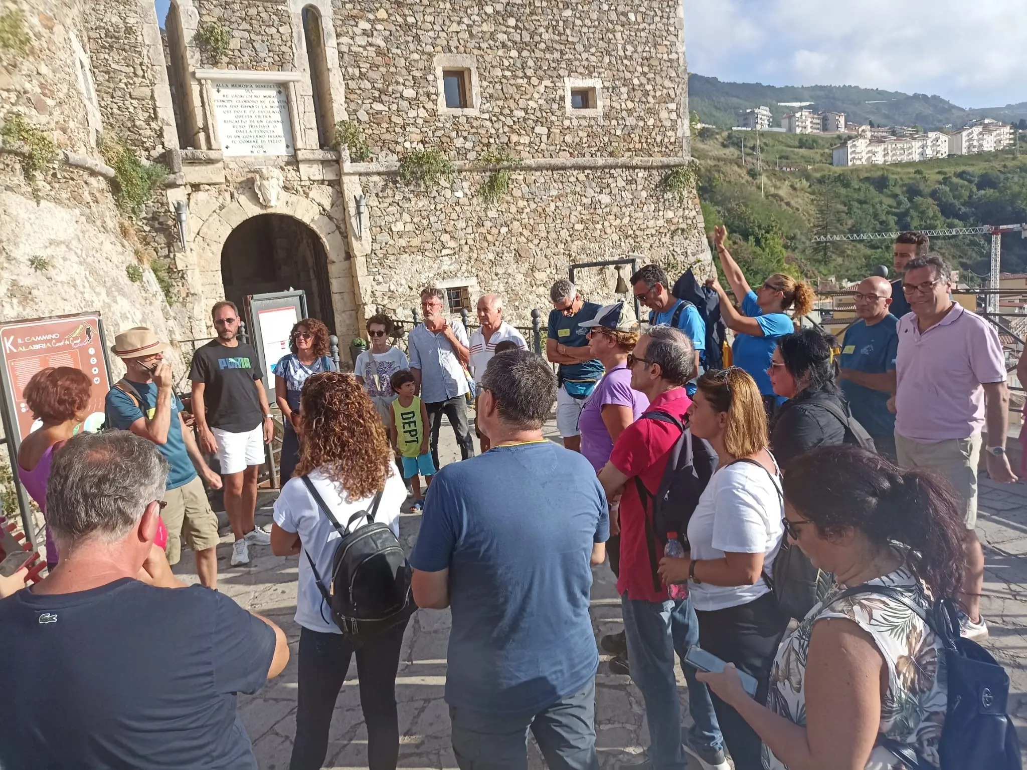 All’iniziativa ha aderito anche il sindaco Sergio Pititto ed i consiglieri Giò Puglisi, Carlo Capocasale e Giusy Federico. Molte sono state le tappe in cui i partecipanti si sono fermati, e in ognuna di esse è stato spiegato il senso dei luoghi e la storia che li ha attraversati. Ed invero, Domenico Sorace, membro dell’associazione, ha narrato le origini della città e del castello (soprattutto il fatto che sia tra i meglio conservati in Calabria). Tra le zone interessate dal percorso, il borgo antico del Carmine, la piazza del Padiglione (e quindi il nuovo punto di vista di Pizzo sulla seggiola e sul crinale della città, con i vicoli che risalgono fino alla nazionale). Il cammino è proseguito anche verso il Palazzo Musolino, dove l’associazione si è soffermata sulla storia della famiglia a cui è intitolata il palazzo, a partire dai tempi della rivoluzione napoletana del 1799 sino al periodo risorgimentale e post unitario.