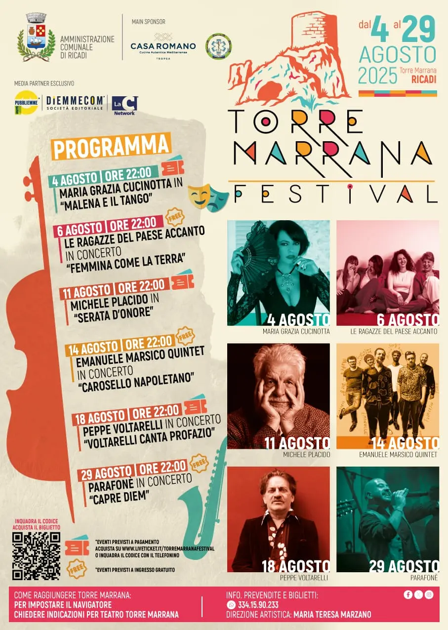 Il festival, che proseguirà fino alla fine di agosto con altri cinque appuntamenti, si propone come proposta culturale stabile per il territorio. La direzione artistica è affidata a Maria Teresa Marzano, mentre il media partner esclusivo è Publiemme – Diemmecom – LaC Network, che ha sposato il progetto curandone l’immagine e che si occuperà della promozione e della comunicazione. L’iniziativa intende offrire alla comunità locale e ai visitatori un’alternativa alla consueta programmazione estiva, inserendo musica e teatro all’interno di uno spazio scenico naturale e simbolico come quello di Torre Marrana. Una scelta che mira a valorizzare non solo il patrimonio paesaggistico della Costa degli Dei, ma anche la sua dimensione culturale e identitaria.