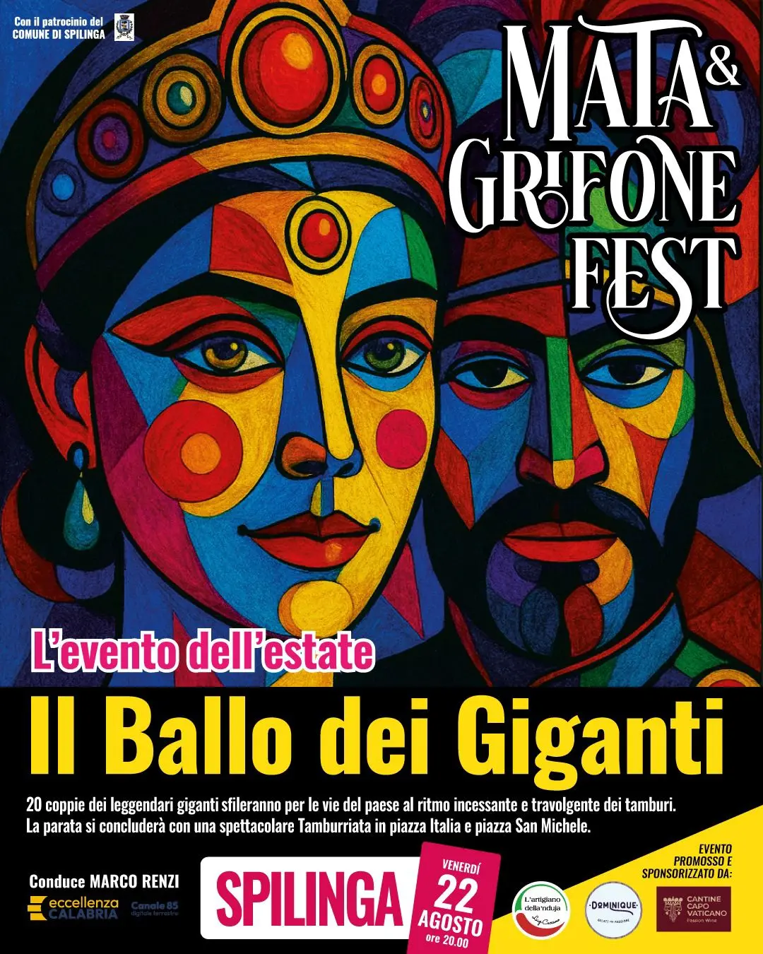 Una serata all’insegna della tradizione e del folklore calabrese. La storia di Mata e Grifone affonda infatti le radici lontano: lui era un moro, giunto sulle coste di Calabria insieme all’esercito dei conquistatori saraceni. Qui si innamora della bella popolana Mata: il loro ballo, accompagnato dalla musica di tamburi e grancasse, allieta le feste patronali e di paese e fa ormai parte del patrimonio culturale calabrese.