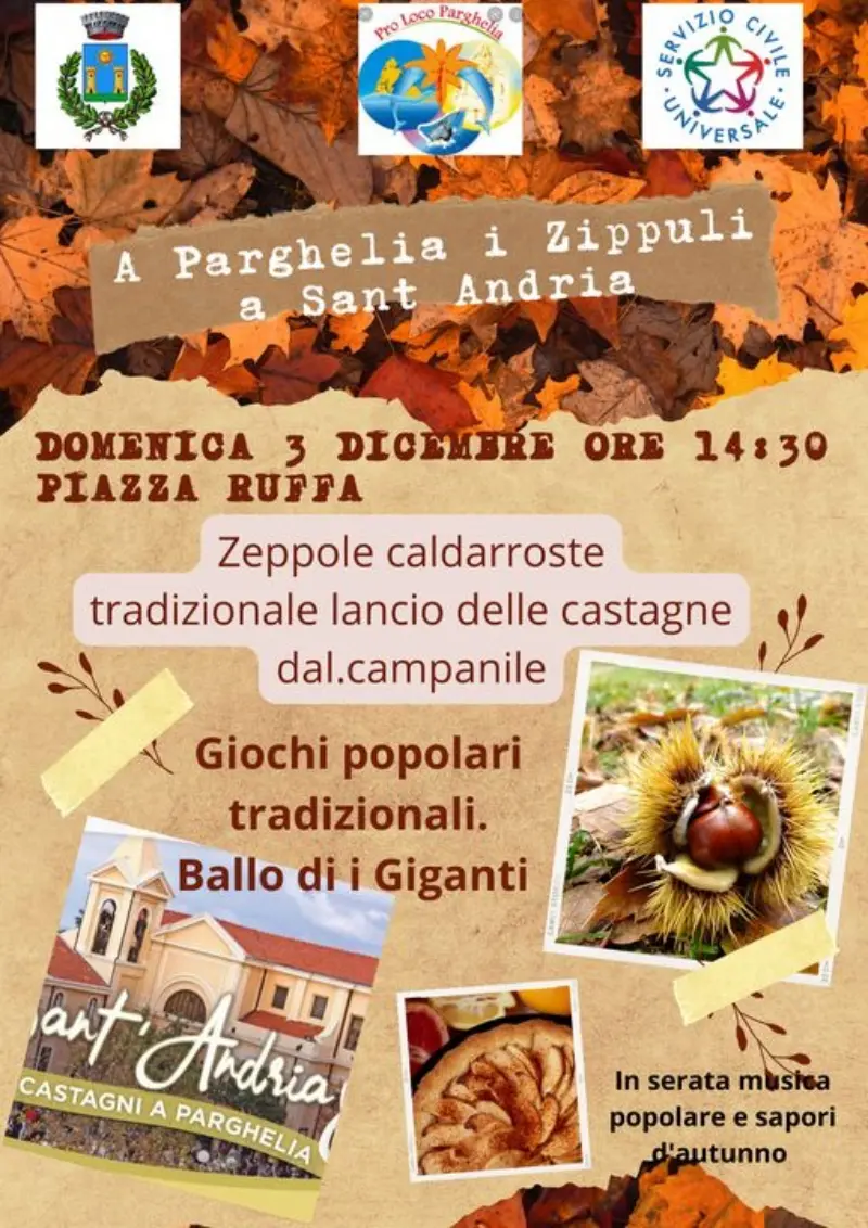 Il tradizionale lancio delle castagne dal campanile della chiesa di Sant’Andrea, in programma per il 29 novembre in occasione della festa patronale di Parghelia, causa maltempo è stato rinviato a domenica 3 dicembre a partire dalle ore 14:30. La manifestazione organizzata dalla Proloco, presieduta da Cristina Anello, dai giovani volontari del servizio civile universale e dall’amministrazione comunale, si concentrerà in piazza Ruffa per la consueta zeppolata e la degustazione di caldarroste. Ad arricchire la festa, oltre alla musica popolare e i sapori d’autunno, ci saranno i consueti giochi della tradizione popolare e il ballo dei giganti “Mata e Grifone”. Gli organizzatori rinnovano l’appello alla collaborazione per la buona riuscita dell’evento: «È necessaria un po’ di collaborazione, affinché la nostra festa – hanno fatto sapere dalla Proloco – possa realizzarsi. Le spese da affrontare sono tante al fine di creare un evento che diffonda la nostra tradizione popolare pertanto, contiamo sull’impegno di tutti i cittadini».