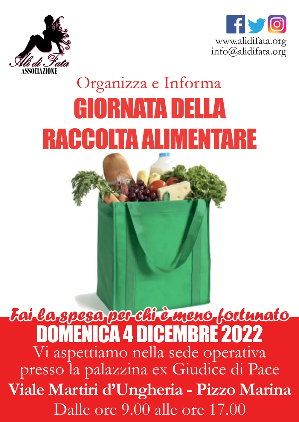 Domenica 4 dicembre, dalle ore 9 alle ore 17, nella sede operativa dell’associazione “Ali di fata” sita in via Martiri d’Ungheria, ex palazzo Giudice di Pace, a Pizzo si svolgerà la “Raccolta Alimentare”, una giornata dedicata all’aiuto per i meno fortunati, attraverso la raccolta di beni di prima necessità: alimenti di facile conservazione e stoccaggio (pasta, olio, tonno, pelati, legumi), prodotti per l’infanzia (pannolini, omogeneizzati, pappe) e per l’igiene della persona. Quanto raccolto sarà destinato a famiglie in difficoltà. “Vogliamo incentivare fortemente questa nostra attività, – ha comunicato l’associazione – dal motto che già ci accompagna da anni: “Fai la spesa per chi è meno fortunato”. Il distinguo tra la nostra azione e quelle delle altre associazioni sta nel voler accogliere le donazioni presso la nostra sede, cercando donazioni spontanee, senza creare situazioni di imbarazzo per alcuni, che, trovandoci alle casse di supermercati o altrove si sentirebbero in dovere, e magari non avendo possibilità economiche potrebbe essere una situazione di disagio”. [Continua in basso]
