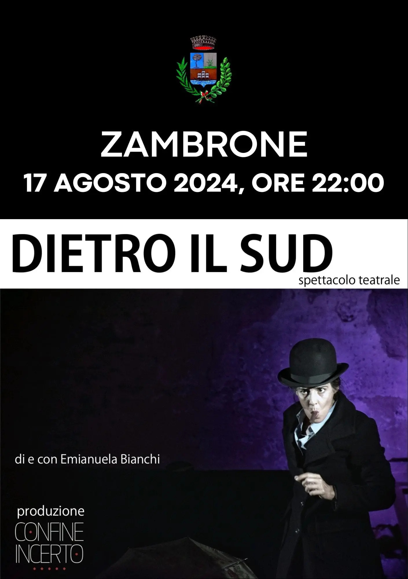 In questo contesto si inserisce lo spettacolo teatrale “Dietro il Sud”, scritto e interpretato dall’attrice Emanuela Bianchi, che andrà in scena il 17 agosto alle ore 22:00 nell’anfiteatro della piazza VIII Marzo di Zambrone. Prodotto dall’associazione culturale Confine incerto, lo spettacolo fa parte del progetto comunale “Kermesse Aramonese”, che offre appuntamenti gratuiti per promuovere la cultura e il turismo del territorio durante la stagione estiva. Dietro il Sud si propone come una biografia emotiva, dando voce alle esperienze di chi è costretto a lasciare la propria casa in cerca di opportunità altrove. Con uno stile narrativo che miscela ironia e poesia, Emanuela Bianchi affronta temi di partenza e distacco: funerali, feste e innamoramenti vengono narrati attraverso gli occhi di chi ha scelto di andarsene e di chi, al contrario, ha deciso di rimanere, creando così un dialogo intergenerazionale sull’emigrazione.