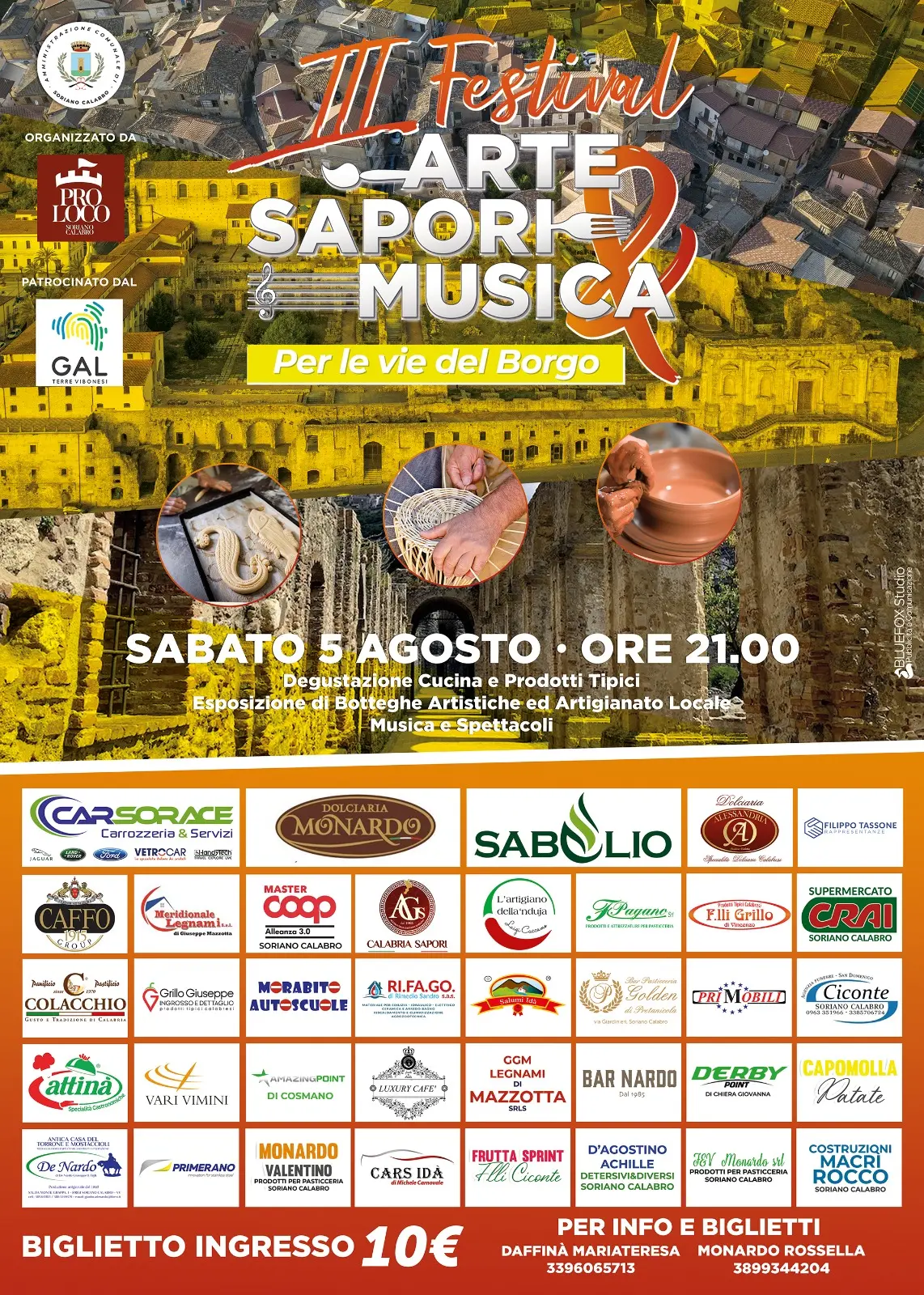 Uno dei borghi più caratteristici della provincia si appresta a illuminare tutti gli scorci delle del centro storico che ospiterà il “Festival Arte Sapori e Musica”, sabato 5 agosto dalle ore 21:00, giunto alla sua terza edizione e tenuto a battesimo dall’amministrazione comunale di Vincenzo Bartone, che lo ha ideato. La manifestazione passata all’organizzazione della Pro Loco di Soriano Calabro, presieduta da Maria Teresa Daffinà, è pronta per tagliare il terzo nastro di inizio e offrire a residenti e turisti, una serata enogastronomica, culturale e di aggregazione. Tra le vie del centro sarà infatti possibile degustare piatti tipici del posto e peculiarità calabresi in un contesto armonioso in cui sarà possibile ammirare gli articoli tipici sorianesi, oltre ad artigiani con le mani in pasta, artisti di strada, scultori, pittori e laboratori di ceramica e terracotta. Naturalmente non mancheranno spazi dedicati ai maestri dei noti dolci Mostaccioli. “E’ un festival – ha spiegato la presidente della Pro Loco, Maria Teresa Daffinà – che punta a valorizzare il territorio e i vari maestri di diversi settori di cui Soriano va fiero, ma è anche e soprattutto un bel momento di aggregazione. Speriamo di offrire una serata piacevole e anche culturalmente di rilievo a quanti vorranno immergersi nella magia di un borgo storicamente e socialmente tra i più importanti della regione”. Per l’occasione, la direttrice del Polo museale di Soriano, Mariangela Preta, aprirà i musei per dare la possibilità ai partecipanti al festival di fruirne.