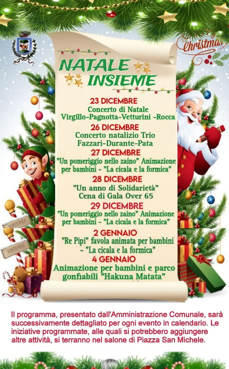 Anche il comune di Spilinga è pronto a immergersi nel clima natalizio. Così, il programma stilato dall’amministrazione comunale sta per prendere il via con eventi pensati per tutti. «Ciascun appuntamento, che si terrà nel salone di piazza San Michele – ci hanno fatto sapere gli amministratori -, sarà presentato singolarmente di volta in volta, in maniera tale da poter fornire tutti i dettagli previsti». Anche su Spilinga, saranno diversi i momenti di piena aggregazione, da quelli dedicati ai bambini, a quelli riservati agli anziani e alle famiglie. Le festività, che trascorreranno tra giochi, animazione, musica e socialità, per la comunità spilingese prenderanno ufficialmente il via il 23 dicembre con l’atteso Concerto di Natale tenuto dai maestri Virgilio-Pagnotta-Vetturini-Rocca. Sequel del concerto natalizio, sarà poi giorno di Santo Stefano a cura del trio dei maestri Fazzari-Durante-Pata. Nelle date del 27 e del 29 dicembre, invece, così come giorno 2 e 4 gennaio, spazio ai più piccoli con tanti laboratori, giochi di squadra su materie scientifiche e le animazioni dal titolo “Un pomeriggio nello zaino”, “La cicala e la formica”, la favola animata di “Re Pipi” incentrata sui valori tradizionali e le usanze calabresi, nuovamente “La cicala e la formica” e il parco giochi gonfiabile “Hakuna matata”. Agli “over 65”, invece, è riservato l’evento dal titolo “Un anno di solidarietà”, «finalizzato a favorire le relazioni interpersonali – hanno sottolineato gli amministratori – e la partecipazione alla vita sociale, di ritrovo e di aggregazione. Per gli eventi di “Natale Insieme”, le date non sono ancora state ufficializzate, in quanto vorremmo evitare che vi siano giorni senza alcuna manifestazione o, peggio, giorni in cui gli eventi si accavallino. Non appena saranno state concordate, saranno resi noti gli ulteriori sviluppi del programma». Al netto dalla programmazione fin qui resa nota, anche associazioni e parrocchia stanno definendo gli ultimi dettagli dei loro eventi. Tra questi ci sono anche il Circolo culturale, che è a lavoro per ultimare l’appuntamento di giorno 3 gennaio, e la parrocchia che presenterà un’iniziativa in calendario per la sera del 30 dicembre. «Il coro polifonico “Mater Misericordie” – hanno concluso -, si esibirà giorno 5 in concerto, sempre presso il salone di piazza San Michele».