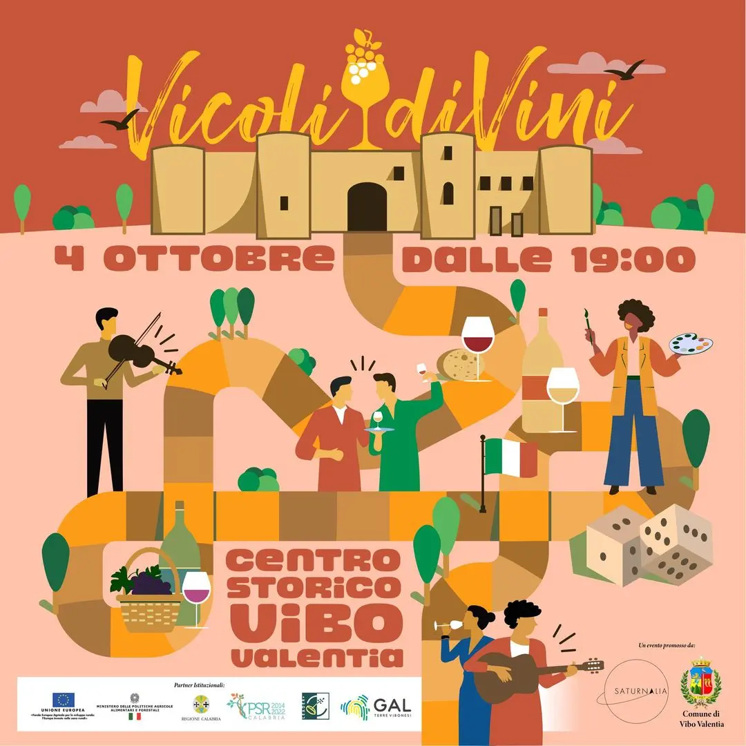 Il 4 ottobre il centro storico di Vibo Valentia ospita una serata all’insegna della convivialità e della valorizzazione dei prodotti tipici locali con l’evento “Vicoli diVini”, organizzato dall’associazione Saturnalia in collaborazione con il Comune di Vibo Valentia e il Gal – Terre Vibonesi. La manifestazione quest’anno giunge alla sua ottava edizione e gl organizzatori si dicono «pronti a stupire e coinvolgere cittadini e visitatori». Vicoli diVini inizierà alle ore 19 per offrire ai partecipanti «un’esperienza unica che mette in primo piano l’enologia calabrese e le prelibatezze culinarie del nostro territorio», hanno sottolineato da Saturnalia. Questa edizione infatti, «è dedicata a sviluppare l’attrattività di Vibo Valentia, trasformando le vie del centro in un percorso sensoriale dove il vino e il cibo saranno protagonisti indiscussi».