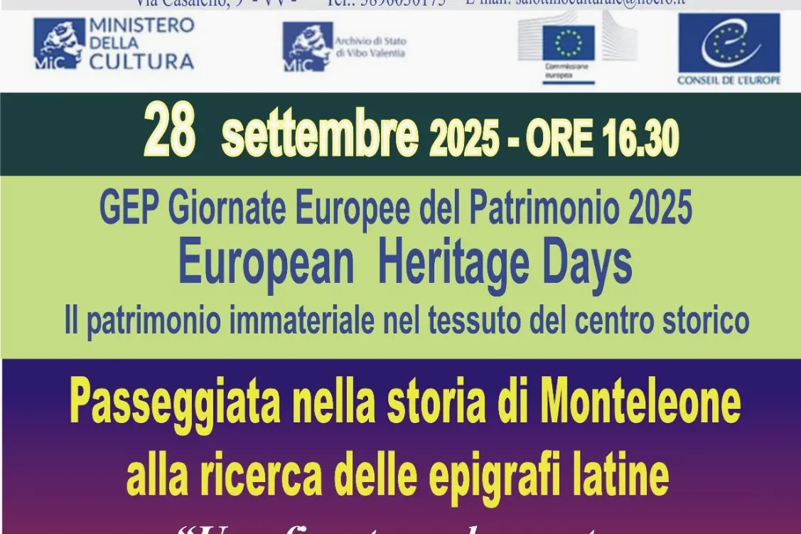 L'Archivio di Stato di Vibo, in collaborazione con l'Associazione “Il Salottino Vibo Valentia – Città Antica”, ha annunciato una serie di eventi per celebrare le Giornate europee del patrimonio (Gep) 2025, in programma per il 27 e 28 settembre. L'iniziativa, patrocinata dall'Ordine degli Architetti di Vibo, si focalizzerà sul tema di quest'anno, "Architetture: l'arte di costruire", con un'attenzione particolare ai palazzi storici e al patrimonio immateriale della città. Il programma si sviluppa su due giorni e mira a esplorare il significato dell'architettura come testimonianza storica e culturale. Gli eventi intendono non solo valorizzare le strutture fisiche, ma anche le "architetture immateriali" come le pratiche e le relazioni che modellano il tessuto civile e culturale.