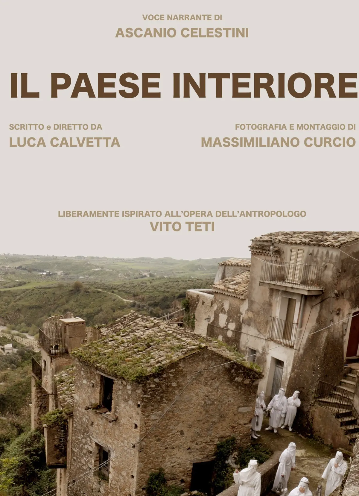 Le strade professionali dei due ospiti si sono incrociate nella realizzazione del film-documentario dal titolo “Il paese interiore”, che verrà presentato nel corso della serata dai due ospiti in dialogo con il presidente della Pro loco Vincenzo De Maria. Il mediometraggio, che costituisce la prima esperienza cinematografica di Luca Calvetta, con la partecipazione di Massimiliano Curcio per la fotografia e il montaggio e di Ascanio Celestini per la voce narrante, è liberamente ispirato all’opera dell’antropologo Vito Teti. Come spiega lo stesso regista, «questo film è la storia di ciascuno e la memoria di tutti. Il film nasce come un viaggio poetico nell’animo della regione più misteriosa d’Italia. Una Calabria inattesa e metafisica, un pellegrinaggio tra borghi abbandonati e antiche tradizioni, tra la bellezza e le sofferenze di una terra inquieta, attraverso l’opera dell’antropologo Vito Teti». Si tratta, infine, di un lavoro realizzato a costo zero, senza alcuna casa di produzione alle spalle e con pochi strumenti.