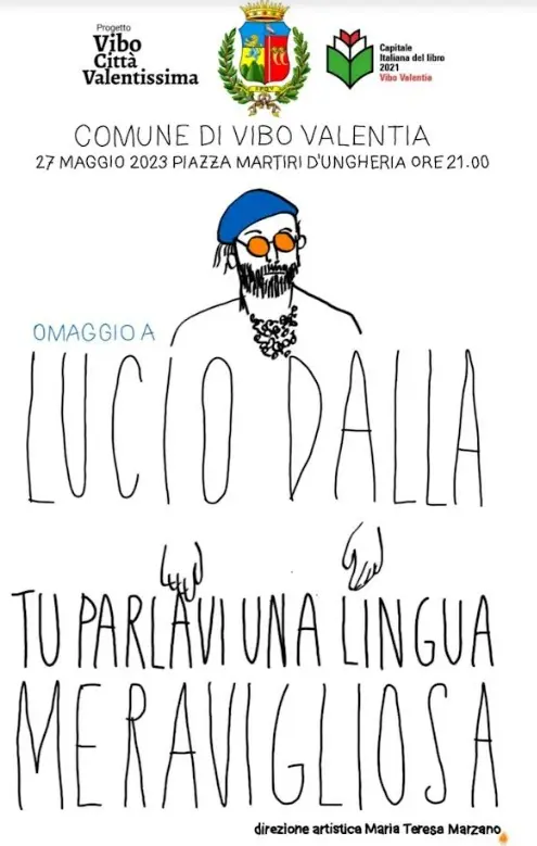 Dopo il tributo a Lucio Battisti, Vibo Valentia si prepara ad un’altra serata in musica aperta a tutti e gratuita. Sabato 27 maggio, alle ore 21 in piazza Martiri d’Ungheria, un altro appuntamento organizzato dall’amministrazione comunale guidata dal sindaco Maria Limardo. È la volta di “Tu parlavi una lingua meravigliosa”, un omaggio a Lucio Dalla, che ancora una volta si articolerà in un concerto a più voci con artisti e musicisti provenienti da diverse parti della Calabria. A promuovere l’evento, gli assessorati alle Attività produttive e alla Cultura, diretti rispettivamente da Carmen Corrado e Antonella Tripodi, col supporto del delegato allo Spettacolo Antonio Schiavello.