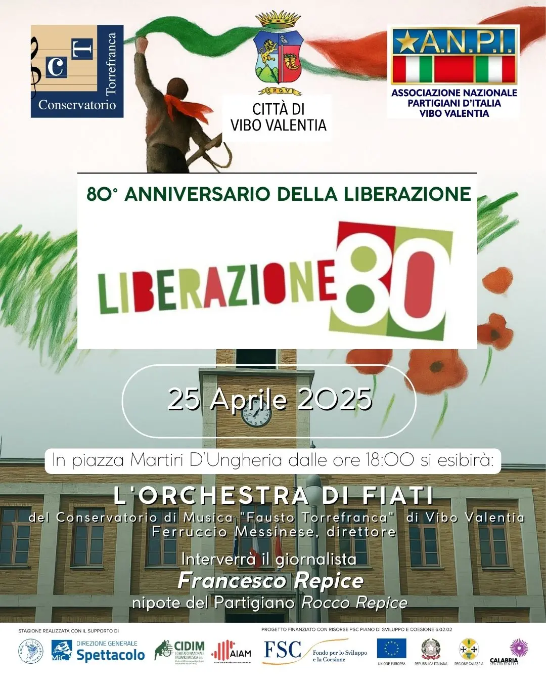 Vibo si prepara alle celebrazioni del 25 aprile che quest’anno, nell’80esimo anniversario della Liberazione, grazie ad un’intesa tra il Comune, il conservatorio ed il comitato provinciale dell’Associazione nazionale partigiani d’Italia, saranno arricchite da un evento che si terrà nella cornice di piazza Municipio, e vedrà protagonista l’orchestra di fiati del Torrefranca diretta da Ferruccio Messinese e l’intervento del giornalista Francesco Repice, nipote del partigiano tropeano, Rocco Repice, che aprirà un focus sulla storia di suo nonno ed in generale sul tema della resistenza e dell’antifascismo.