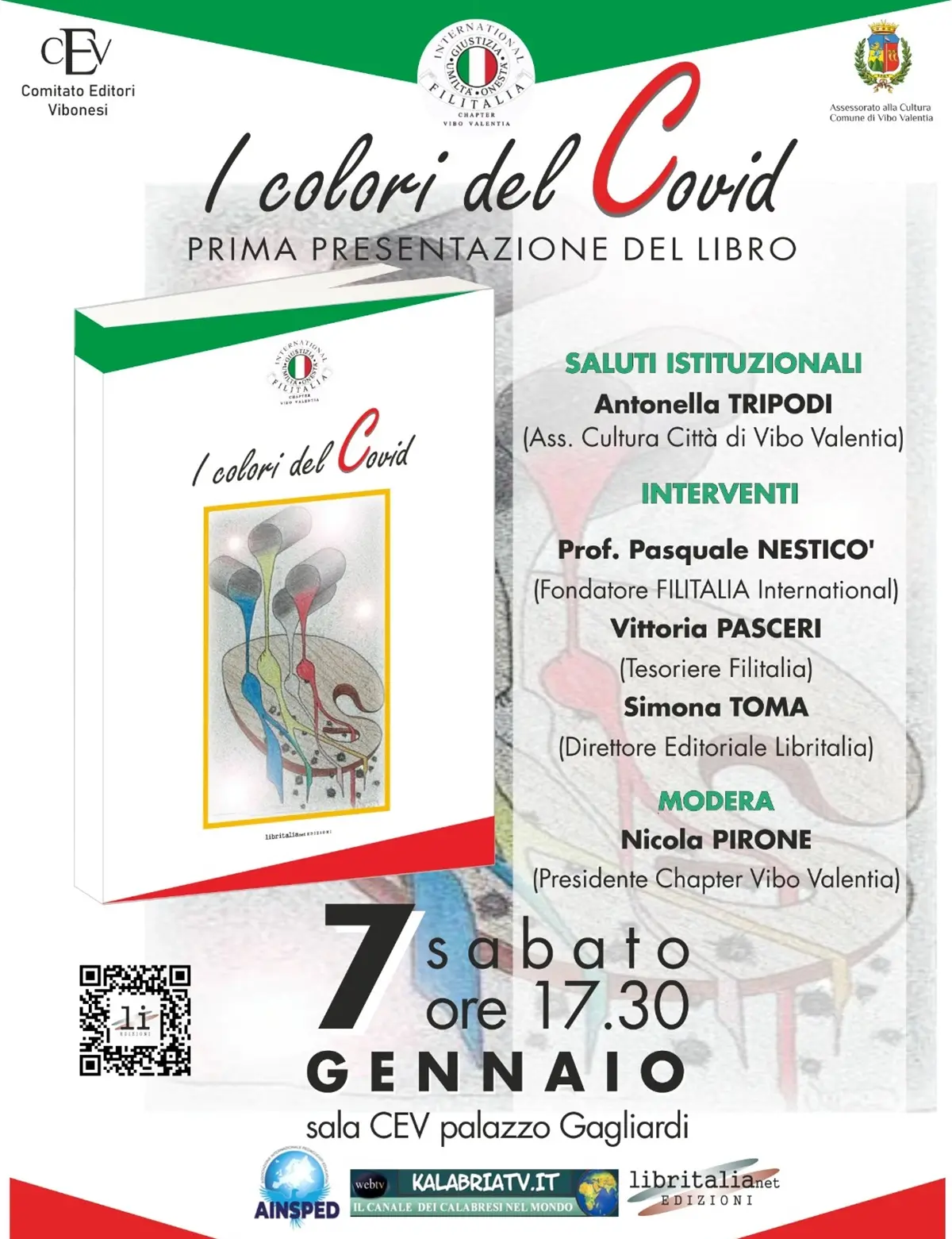 Si terrà questo pomeriggio, sabato 7 gennaio, alle ore 17.30, nella suggestiva cornice dello storico Palazzo Gagliardi di Vibo Valentia la prima presentazione del volume “I colori del Covid”, Libritalianet edizioni. L’iniziativa è a cura dei partner della Filitalia international. All’evento interverranno Pasquale Nesticò (fondatore Filitalia international), Vittoria Pasceri (tesoriere Filitalia) e Simona Toma (direttore editoriale Libritalia). L’incontro sarà moderato da Nicola Pirone (presidente Chapter Vibo Valentia). A rivolgere i saluti istituzionali della città di Vibo Valentia sarà l’assessore comunale alla Cultura Antonella Tripodi. «Anche i bambini, forse più degli adulti – si legge nella locandina di invito all’iniziativa di questo pomeriggio – visualizzano il Covid e lo rappresentano con questa immagine, probabilmente perché per oltre due anni i media, i social e qualsiasi strumento di informazione l’hanno ampiamente diffusa, non solo in maniera scientifica, ma anche sottoforma di cartoni animati, divertente, proprio per i più piccoli, per provare ad alleggerire un po’ la loro pressione psicologica».