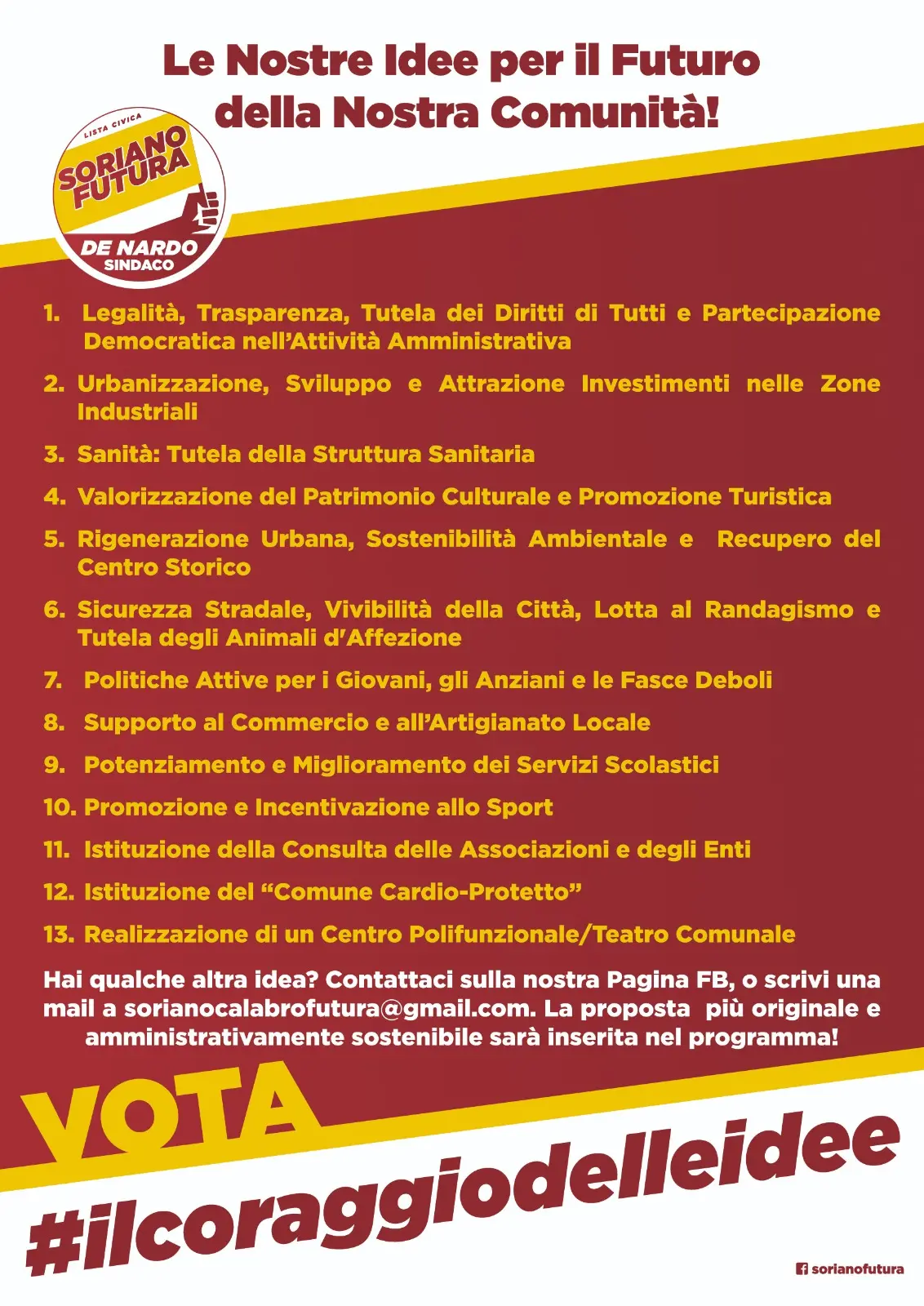 LEGGI ANCHE: Comunali: ecco la lista “Soriano Futura” con candidato a sindaco Antonino De Nardo