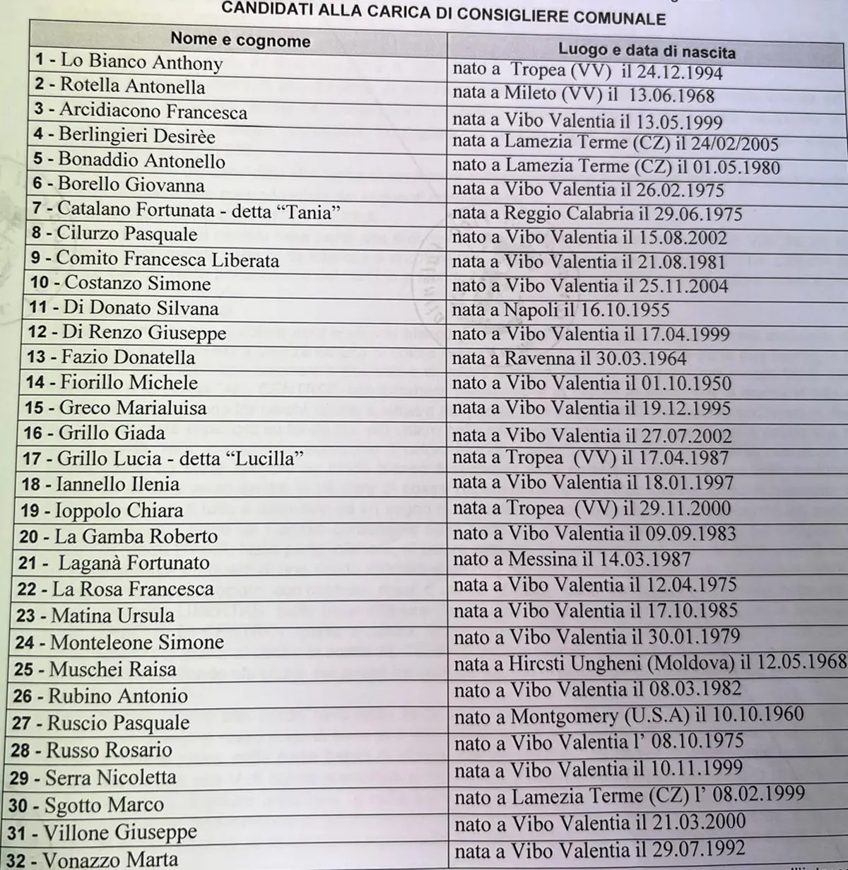 Cinque liste per la coalizione di centro in vista delle comunali di Vibo Valentia che vedono candidato a sindaco l’avvocato Francesco Muzzopappa. Oltre alla lista di Azione (LEGGI QUI: Comunali a Vibo, la lista di Azione a sostegno del candidato Muzzopappa), la lista denominata “Insieme al Centro” schiera i seguenti aspiranti consiglieri comunali: Maria Rosaria Nesci, Mino De Pinto, Francesco Alessandria, Francesco Antonio Artusa, Silvio Biondino, Renato Bulzomì, Francesco Calzone, Bruno Giovanni Carè, Domenico Francesco Castagna, Caterina Natale, Danilo Coloca, Federica Crudo, Raffaellina De Fina, Nunzio Fortuna, Salvatore Grasso, Cesare Ierullo, Giuseppe Librandi, Giulia Lico, Francesca Lo Bianco, Michelina Mancuso, Antonella Massaria, Caterina Mongiana, Nicoletta Alba, Giovanna Parise, Domenico Polistina, Giuseppe Ramondino, Francesco Rottura, Antonio Schiavone, Antonio Scriva, Ivan Servelli, Francesco Tolomeo, Sisto Tozzo. Di seguito e in basso tutte le altre liste della coalizione di centro.
