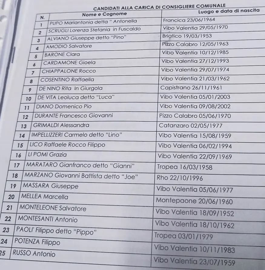 Dopo il deposito stamane della lista del Movimento Cinque Stelle arrivano altre due liste della coalizione progressista a sostegno della candidatura a sindaco di Vibo Valentia di Vincenzo Romeo. Si tratta della lista “Progressisti per Vibo” riconducibile al consigliere regionale Antonio Lo Schiavo, ai Verdi e a Sinistra Italiana, e quello denominata “Progetto Vibo – Centro Studi con Romeo”. I consiglieri comunali da eleggere sono in totale 32. La lista “Progressisti per Vibo” ne candida 28 che proponiamo di seguito. A seguire, invece, i candidati della lista “Progetto Vibo – Centro Studi con Romeo”.