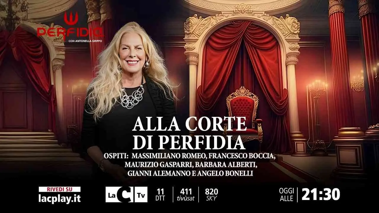 Torna questa sera Perfidia. La nuova puntata andrà in onda alle ore 21:30 su LaC Tv. Dalla nostra sede di Roma, i protagonisti più autorevoli della politica italiana saranno alle prese con il fuoco di fila delle domande di Antonella Grippo. Tra scenari internazionali di guerra e divisioni nel dibattito pubblico italiano, tanti e d’attualità saranno i temi trattati. Ecco di seguito gli ospiti dell’appuntamento settimanale con il talk politico più incandescente del piccolo schermo, che questo venerdì ha come titolo “Alla corte di Perfidia”. Saranno con noi: Massimiliano Romeo, capogruppo Senato Lega; Francesco Boccia; capogruppo Senato Pd; Angelo Bonelli, Alleanza Verdi e Sinistra; Maurizio Gasparri, capogruppo Senato Forza Italia; Gianni Alemanno, Movimento Indipendenza; Barbara Alberti, scrittrice.