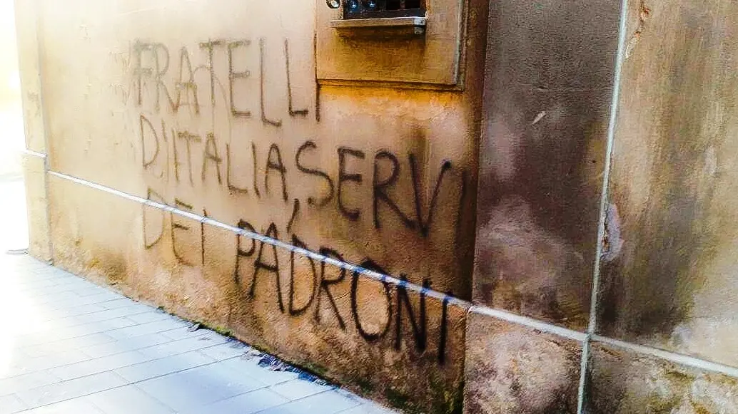 Ecco, Maria Antonietta, è il tipo di governante che vi meritate. Il vostro tentativo, per giunta piuttosto scialbo, è completamente estraneo al vostro, malato, tentativo di esprimere un’idea democratica. Il centro storico, della mia, della vostra città, proprio di fronte alla chiesa cinquecentesca del grande architetto senese Baldassarre Peruzzi, imbrattato da vandali, questo l’unico termine che mi viene in mente, che speravano, e tra l’altro erroneamente, di provocare me o il mio partito.