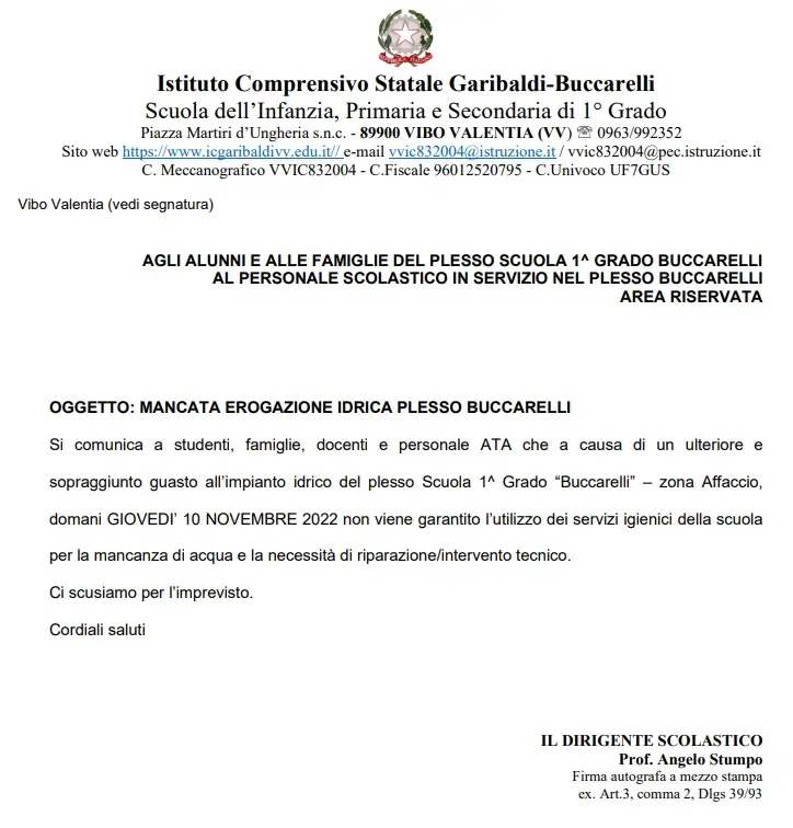 “Le suddette problematiche sono state circostanziate da elementi di fatto inconfutabili ed in particolare, per quanto attiene il problema dell’acqua, si è fatto riferimento ad una comunicazione formale del dirigente scolastico del Plesso Buccarelli. quanto invece alla strada di S.Pietro, chiusa ed impraticabile, è stata sufficiente la documentazione fotografica. [Continua in basso]