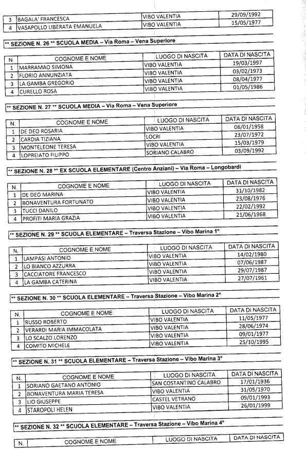 La Commissione elettorale del Comune di Vibo Valentia tramite delibera ha nominato 152 scrutatori effettivi e 152 scrutatori supplenti tramite sorteggio. Saranno chiamati a gestire le operazioni di voto in vista dell’imminente tornata elettorale del 3 e 4 ottobre. Più nel dettaglio, oltre alla nomina degli effettivi, l’organismo ha proceduto alla formazione di una graduatoria di altri elettori, compresi nell’albo, per sostituire secondo l’ordine di estrazione coloro che non possono assumere l’incarico per grave impedimento.