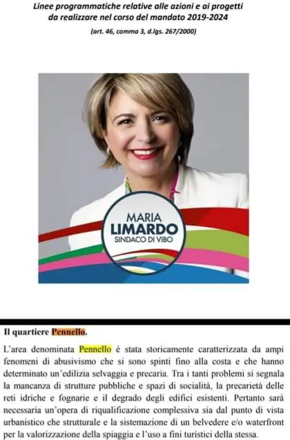 L’altra tappa del viaggio ha riguardato il popoloso quartiere che affaccia sul lato sud della frazione e, Stefano Soriano, ricorda le parole del sindaco Maria Limardo al tempo della sua candidatura: “Il Pennello è una zona storicamente caratterizzata da ampi fenomeni di abusivismo che si sono spinti fino alla costa e che hanno determinato un’edilizia selvaggia e precaria. Tra i tanti problemi si segnala la mancanza di strutture pubbliche e spazi di socialità, la precarietà delle reti idriche e fognarie e il degrado degli edifici esistenti. Pertanto, sarà necessaria un’opera di riqualificazione complessiva sia dal punto di vista urbanistico che strutturale e la sistemazione di un belvedere e/o waterfront, per la valorizzazione della spiaggia e l’uso a fini turistici della stessa”.