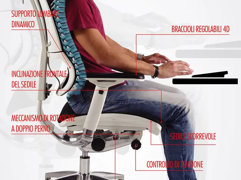 “Per migliorare e prevenire le problematiche al rachide – cervicale, dorsale e lombare -, dei soggetti che sono costretti a passare tante ore seduti, la prima cosa da fare sarebbe una corretta ergonomia sul posto di lavoro. Corretto posizionamento del piano di lavoro e della sedia, – ha spiegato Tavella – tenere appoggiati tutti e due i piedi a terra, se necessario anche su un rialzo, tenere appoggiati i gomiti alla scrivania o ai braccioli della sedia con un’angolazione di 90°, tenere la schiena ben poggiata allo schienale. La sedia – ha aggiunto – deve essere ergonomica e con le rotelle in modo da assecondare i movimenti del corpo. Evitare che nello schermo ci sia il riflesso della luce, che sia del sole o della stanza in cui si lavora”. Le regole per ritagliarsi uno spazio adatto per lavorare tuttavia esistono. “Cosa non fare da seduti? Non mantenere le spalle contratte mentre si lavora con la tastiera – ha proseguito il fisioterapista – non spingere la testa in avanti mentre si lavora al pc; non scivolare in avanti sul sedile della sedia; non tenere il busto inclinato in avanti; non utilizzare il mouse con il braccio troppo allargato, ma tenerlo perpendicolare alla spalla e, soprattutto, non tenere il telefono tra collo e spalla per usarlo mentre si hanno le mani occupate”.