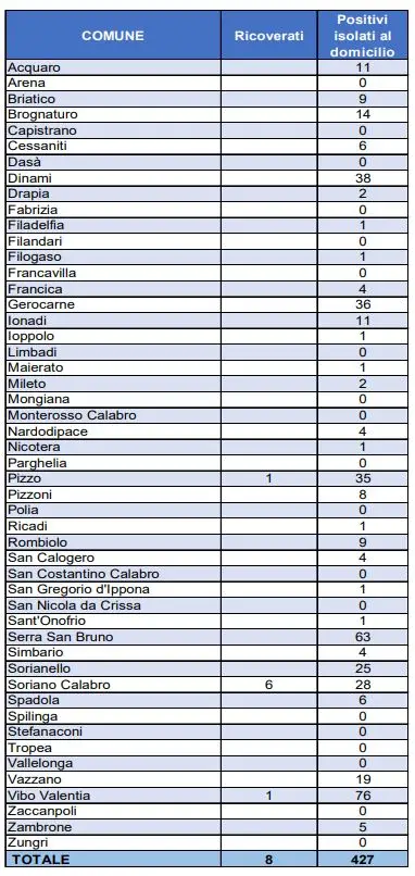 Per quanto riguarda i ricoveri, sono così suddivisi: 6 a Soriano, 1 a Pizzo e uno a Vibo.