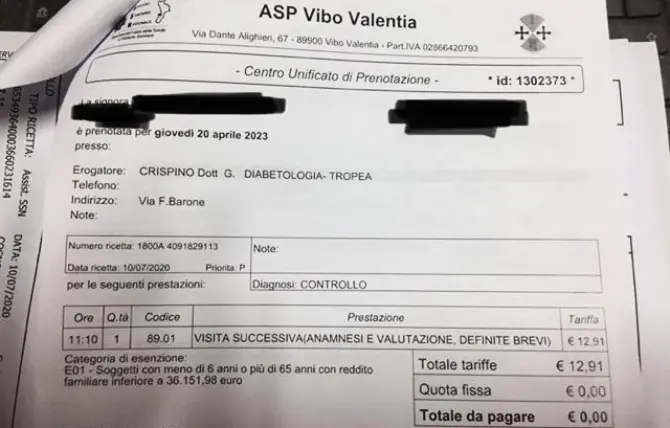 I ritardi e le difficoltà nella prenotazione di visite tramite il Servizio sanitario nazionale rappresentano ormai un triste copione già scritto che si ripete quasi quotidianamente. L’ultima segnalazione arriva da Vena di Ionadi dove, suo malgrado, una signora di 76 anni, si è vista rimandare una prestazione sanitaria al… 2023. La donna ha necessità di sottoporsi a visita diabetologica viste le sue patologie. È infatti immunodepressa e presenta problemi ai reni. I controlli fanno parte di una routine legata alle sue condizioni di salute.