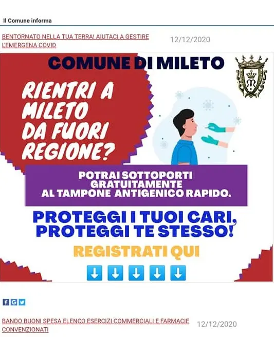 La paura è che questo porti ad un eccessivo allargamento delle “maglie” e delle precauzioni comportamentali anti Covid e, conseguentemente, a un nuovo aumento dei casi pandemici. Oggi, intanto, proprio per monitorare la situazione, prevenire questo rischio e scongiurare tale eventualità il Comune – in collaborazione con il dottor Antonio Mercuri, l’architetto Giuseppe Stellitano, il consigliere Elisa Galloro e altri volontari – ha avviato l’effettuazione dei tamponi rapidi antigenici agli oltre 50 emigrati registratisi in questi giorni all’apposito link presente sulla Home page del sito istituzionale, in vista del loro rientro per le festività natalizie. Al momento, così come comunicato pochi minuti fa dal sindaco Salvatore Fortunato Giordano, tutti questi test hanno dato esito negativo. E questo, indubbiamente, fa tirare un sospiro di sollievo e ben sperare in ottica futura.
