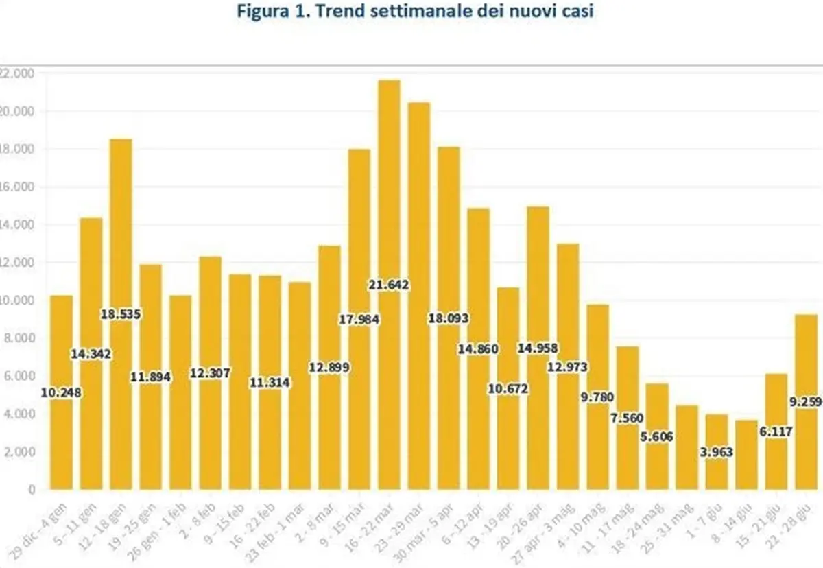 Crescono, tra le altre cose, anche i numeri assoluti sui nuovi casi. La crescita (che si registra per la terza settimana di fila) porta dai 6117 ai 9259, un incremento superiore al 30% che preoccupa e non poco gli analisti: se si dovessero confermare questi tassi di crescita, che sono tra l’altro da stimare al rialzo e non al ribasso visto il totale abbandono in questo momento dei dispositivi di protezione da parte pressoché di tutta la popolazione, ci potremmo trovare in poche settimane ai livelli dell’ondata di marzo, quando abbiamo toccato il picco di 21mila casi settimanali.