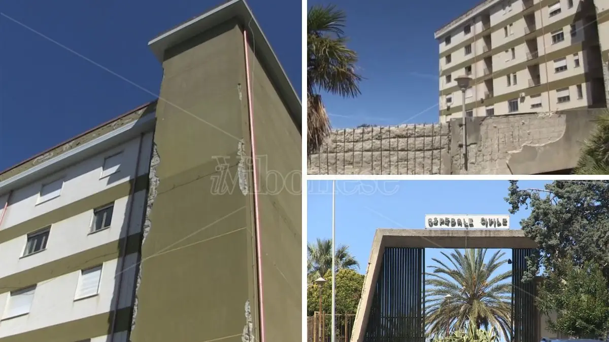 Con i suoi cinque piani svetta alto sulla cittadina, inconfondibile con le sue strisce color verde muschio. Una struttura che di ospedale ha solo il nome, mai entrata veramente in funzione ma che oggi rappresenta comunque un importante punto di riferimento per tutto il circondario. Dopo anni di incuria, per il presidio ospedaliero di Nicotera sembra ora essere arrivato il momento di “rifarsi il look”: l’Asp di Vibo Valentia ha infatti avviato le procedure per l’affidamento dei lavori di manutenzione straordinaria volti al ripristino delle facciate. Un primo passo per restituire decoro ad un edificio che attualmente mostra tutti i segni del tempo e anche dell’abbandono. Intonaco sgretolato, pilastri in vista in più punti così come le gabbie in ferro rigorosamente arrugginito. Il cemento in alcuni angoli della struttura sembra quasi rosicchiato. E ancora, infiltrazioni d’acqua e infissi fatiscenti, con anche alcune finestre rotte. Scale esterne e marciapiedi malmessi. [Continua in basso]