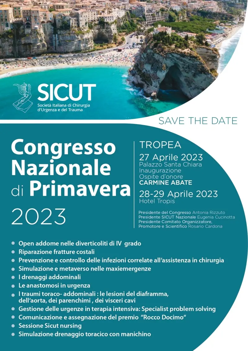 La tre giorni promossa dalla Società italiana di chirurgia d’urgenza e del trauma (Sicut), sarà inaugurata giovedì 27 aprile a palazzo Santa Chiara con un evento che avrà come ospite d’onore Carmine Abate. Il 28 e il 29 i lavori congressuali saranno ospitati presso l’hotel Tropis. Interverranno il presidente del congresso Antonia Rizzuto, il presidente nazionale Sicut Eugenia Cucinotta ed il presidente del comitato organizzatore, promotore e scientifico Rosario Cardona. Le tematiche da trattare saranno molteplici. [Continua in basso]