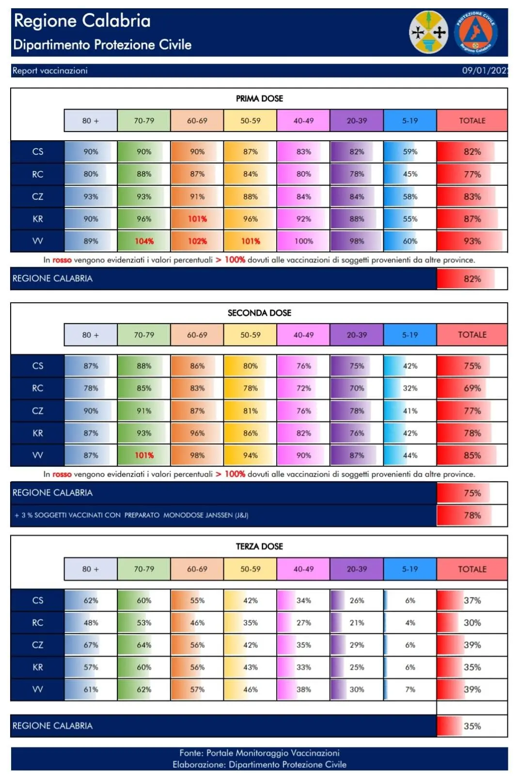 Di seguito la tabella con tutti i dati relativi alla Calabria, distinti per province e per fascia d’età.