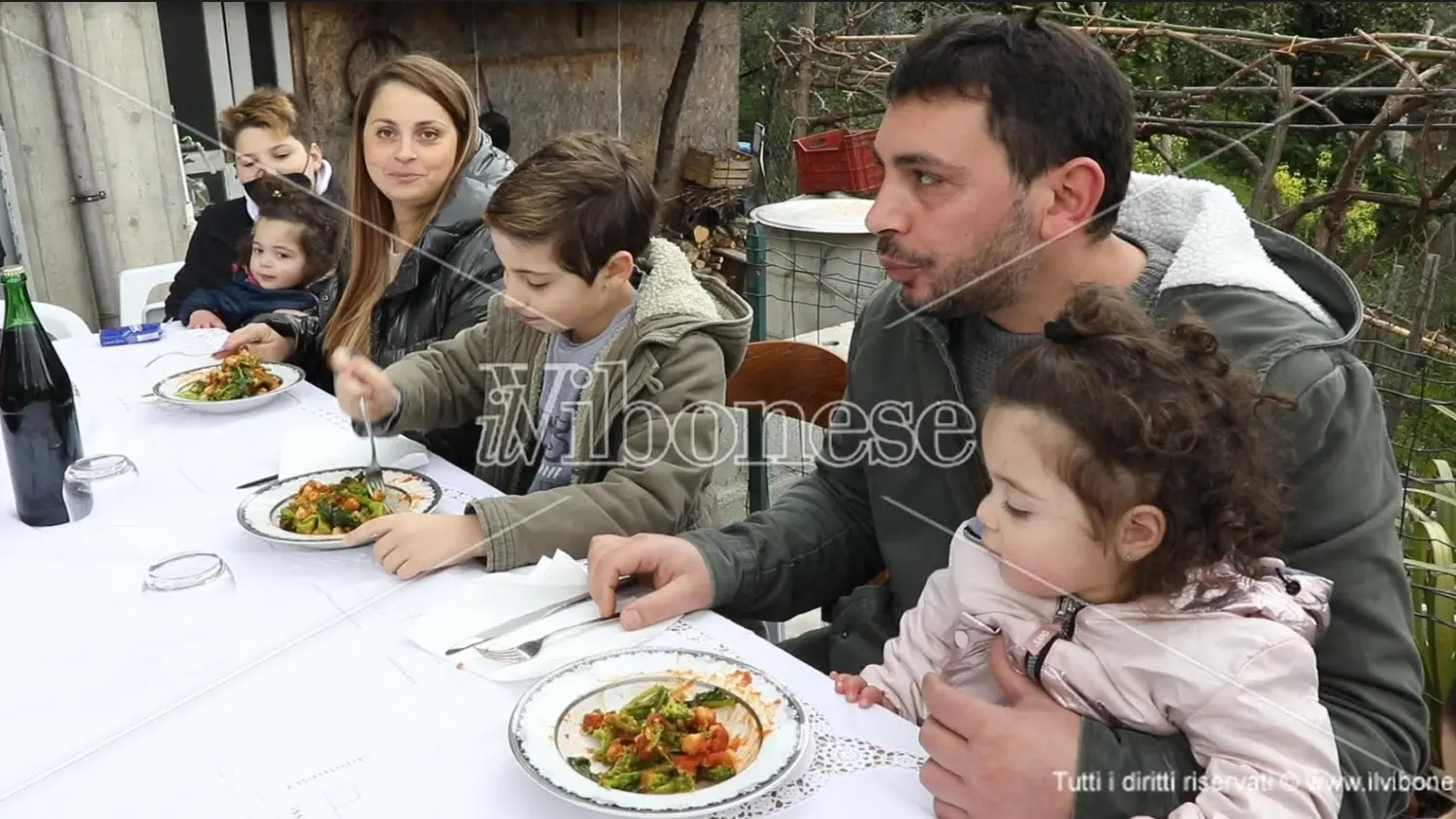 Alla fine della celebrazione tutto il paese insieme ai sacerdoti e al vescovo, si sono radunati per il tradizionale pranzo, dove a rappresentare la Sacra Famiglia c’erano Mariangela e Simone con i loro otto figli. Secondo la tradizione deve essere la famiglia ad assaggiare e benedire il pranzo per prima pronunciando la frase “Sia lodato Gesù, Giuseppe e Maria”. Durante il banchetto, un gruppo di persone gira per le vie del paese a consegnare il piatto di ceci e broccoli, definito “la devozione di San Giuseppe” alle persone malate e che non sono riuscite a partecipare.