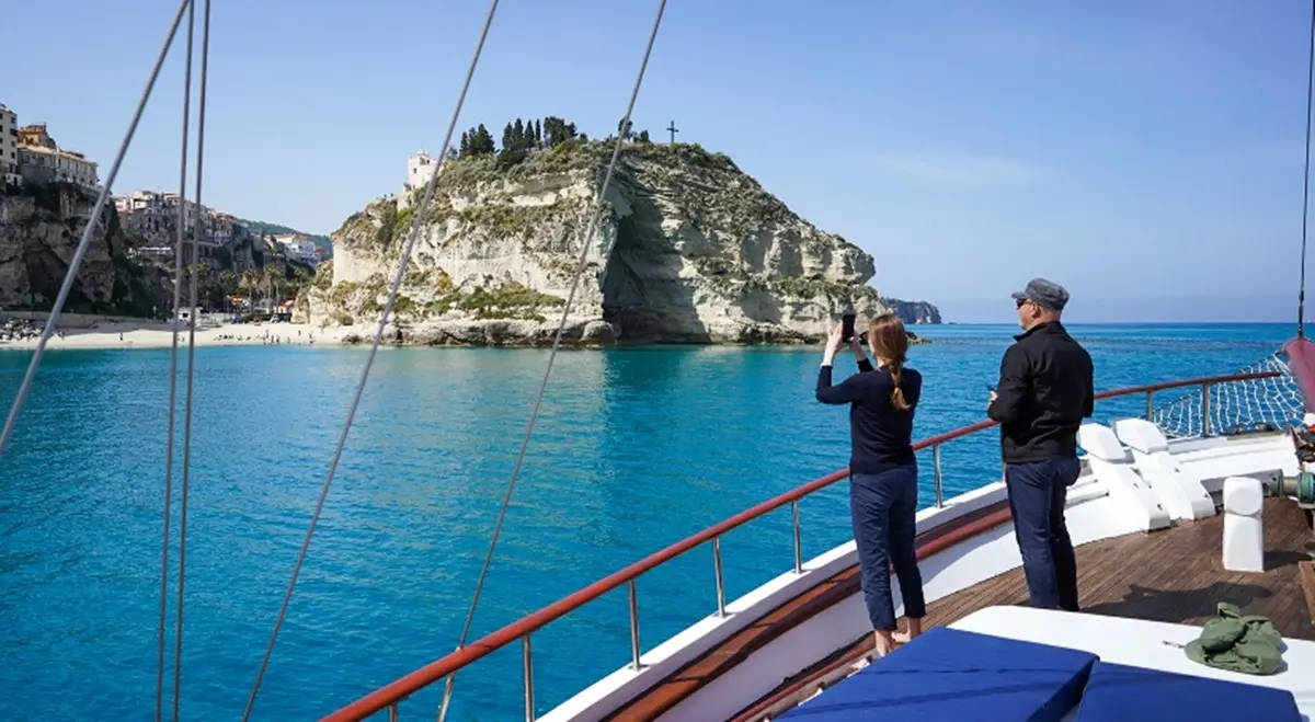 Tropea–Capo Vaticano, andata e ritorno. Godersi il panorama di questo suggestivo tratto della Costa degli dei, direttamente dal mare, a bordo di un caicco. È l’esperienza e sono le emozioni da vivere all’interno de La Tropea Experience che sarà inaugurata domani, venerdì 29 aprile, alle ore 9 da Piazza Cannone. Ad operare il simbolico taglio del nastro della tre giorni di eventi che si concluderanno domenica 1° maggio ci saranno, insieme agli altri protagonisti del Festival della Cipolla Rossa, anche il sindaco Nino Macrì, Giuseppe Laria, presidente del Consorzio Cipolla Rossa di Tropea Calabria Igp e Daniele Cipollina, event planner della kermesse. La terra incontra il mare è l’esperimento che porta nel piatto l’incontro tra i prodotti della terra e quelli del mare, grazie alla collaborazione con l’azienda Kaikko Tropea Srls. La location che ospiterà questa parentesi è appunto un caicco che ha preso il largo oggi per un’escursione destinata ai giornalisti dei media nazionali che si stanno occupando di raccontare sulle pagine delle proprie testate l’evento. [Continua in basso]