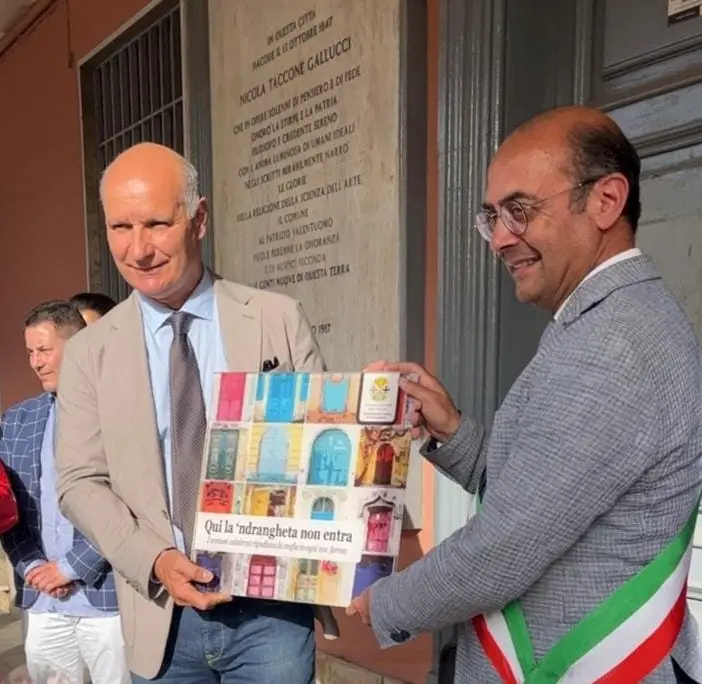 “Qui la ‘ndrangheta non entra”. È ritornata a campeggiare nuovamente all’entrata di Palazzo dei normanni la scritta tesa a ribadire che Mileto ripudia la mafia in tutte le sue forme. La targa che la conteneva, donata dal Consiglio regionale nell’ambito di una specifica campagna di sensibilizzazione, era stata deturpata e danneggiata lo scorso mese di febbraio da due giovani, di cui uno minorenne, immortalati dalle telecamere a circuito chiuso presenti all’esterno del municipio. Nelle scorse ore ne è stata installata al suo posto una nuova, consegnata al sindaco Salvatore Fortunato Giordano dal consigliere regionale Michele Comito, componente della Commissione regionale contro la ‘ndrangheta. La breve cerimonia di ricollocazione della targa si è svolta in un giorno particolare, in occasione del trentesimo anniversario della strage di Capaci. Nell’attentato dinamitardo persero la vita, ad opera di Cosa Nostra, il magistrato Giovanni Falcone e la sua scorta.