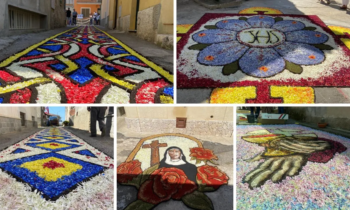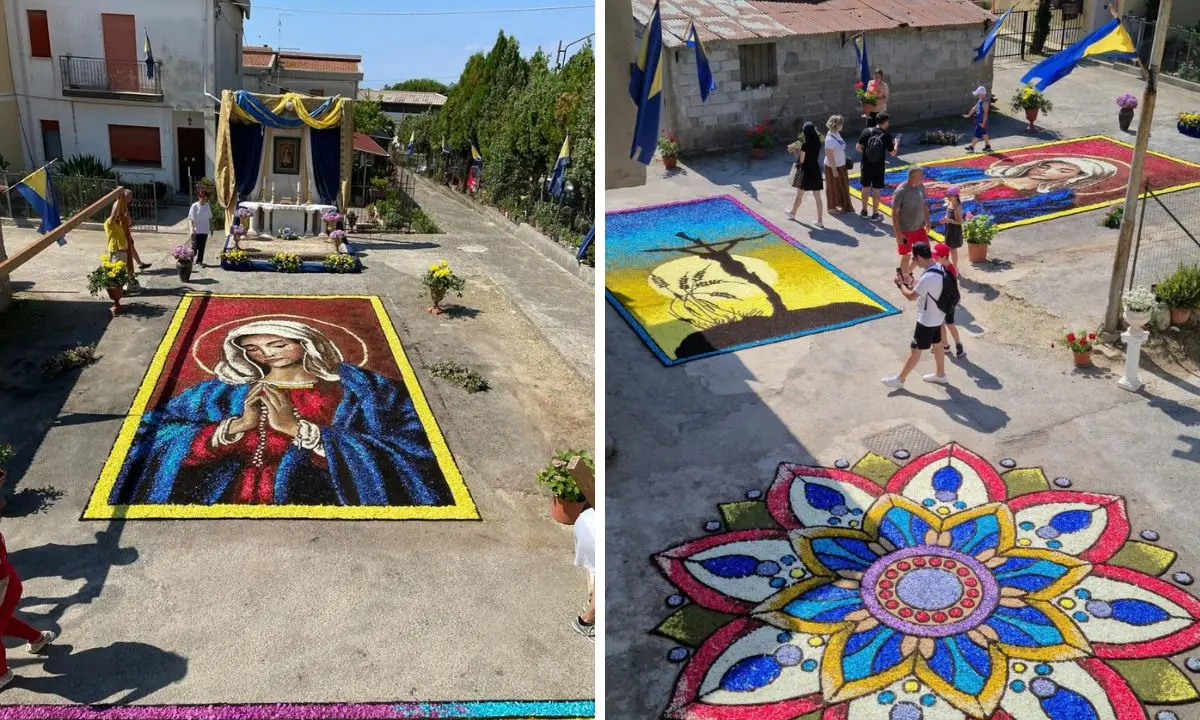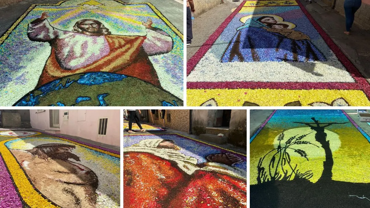 I tappeti floreali vengono studiati per settimane e create dagli abitanti di Potenzoni distinti in quattro rioni: Agave, Glicine, Torre e Chiesa. Le opere sacre vengono realizzate con petali ed altri materiali rigorosamente vegetali. Molti dei fiori utilizzati provengono dai campi. Il “percorso” si snoda nel centro storico di Potenzoni con un solo scopo: omaggiare il passaggio del Santissimo. Il risultato lascia il visitatore senza parole: tutte le vie vengono trasformate in una suggestiva galleria d’arte e cielo aperto. Un’esperienza che nulla ha da invidiare a blasonate manifestazioni di calibro nazionale. [Continua in basso]