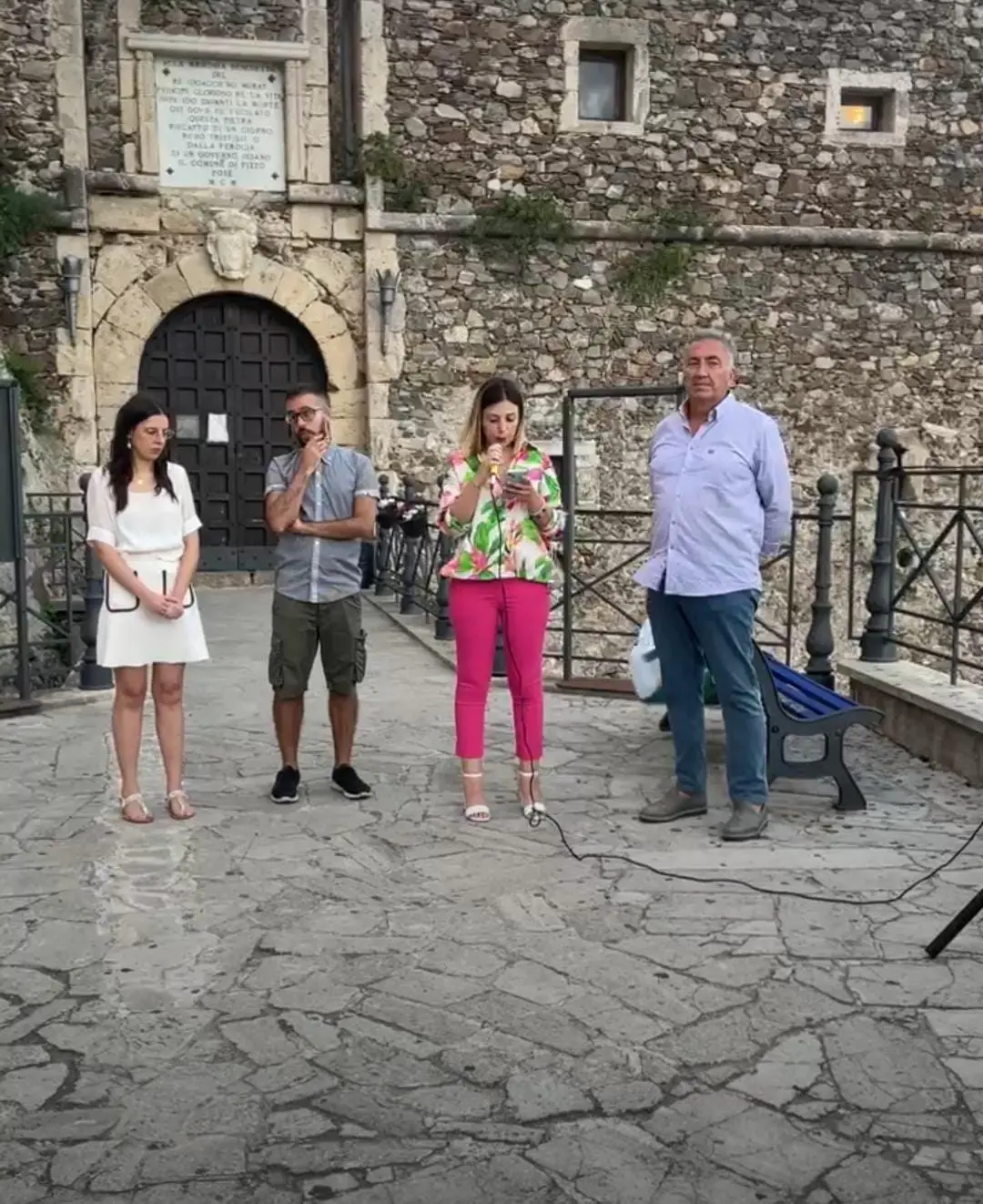 Dopo avere preso la parola e ringraziato i presenti, il sindaco Sergio Pititto, ha riferito che quella di ieri per lui è stata una giornata triste: «Oggi perdo un amico, Raffaele Iorfida». Dopo un momento di commozione dovuto alla morte del consigliere comunale di Vibo Valentia, il sindaco ha poi proseguito: «Vedo tanti ragazzi questa sera qui e non potevano fare regalo più grande alla città di Pizzo. La società cresce con i giovani e con questa panchina lo si fa con principi come solidarietà e pace».