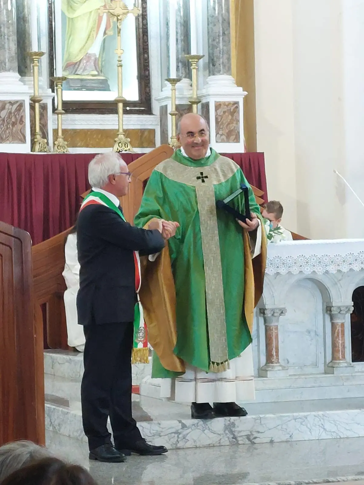 Tra i partecipanti, anche il sindaco Nicola Derito, il presidente della Pro Loco Costantino Suppa, dell’associazione “Amici di San Rocco” Antonio De Luca e di “Disabili senza Barriere” Rocco De Luca. Quest’ultima realtà di terzo settore, nell’occasione ha voluto esprimere gratitudine a don Sicari, «per il lavoro svolto nell’arco di questi anni in favore della comunità e per essersi fatto portavoce di tutti i disabili e i sofferenti del territorio», donandogli un quadro con dedica che lo ritrae mentre svolge la sua preziosa funzione.