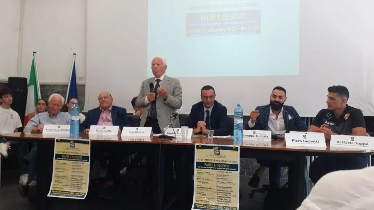 La sfida su un tema di accattivante attualità come “Paure e desideri: cosa serve oggi ad un giovane per realizzarsi nello sport e nella vita?” è stata lanciata da “Ali di Vibonesità” agli studenti degli Istituti Superiori di Vibo Valentia e svoltasi nell’aula magna del Liceo Classico “M.Morelli”, dove erano presenti anche insegnanti e cittadini, ha portato a casa l’atteso risultato: la connessione tra paura e desiderio si conferma una componente essenziale della nostra umanità. Imparare a gestire questa tensione in modo consapevole consente di vivere una vita più autentica e significativa, in cui entrambe diventano parte integrante del viaggio dei giovani verso l’evoluzione personale. A rubare la scena all’evento, moderato da Angelo Stumpo, dirigente scolastico dell’Istituto comprensivo Garibaldi-Buccarelli, sono stati proprio loro, i giovani, che in questo primo step su “scuola e sport”, programmato dall’associazione vibonese sul filone legato al futuro delle nuove generazioni, hanno occupato quasi tutto il tempo a disposizione per raccontare le tantissime esperienze personali fatte di impegno nello studio e pratica delle attività sportive. Non a caso nel parterre, presieduto da Tony Bilotta, hanno trovato posto esperti della scuola e rappresentanti del mondo sportivo calabrese e tra questi Pippo Caffo e Antonello Gagliardi, presidente e direttore generale della US Vibonese, Giuseppe Magallini, per il presidente dell’US Catanzaro Floriano Noto, Giuseppe Defina direttore sportivo della Tonno Callipo Volley, accompagnato da alcuni giocatori, Claudio Torchia, direttore sportivo della Todosport e Francesco Bilotta, presidente provinciale del Centro Medicina dello Sport Fmsi-Coni.