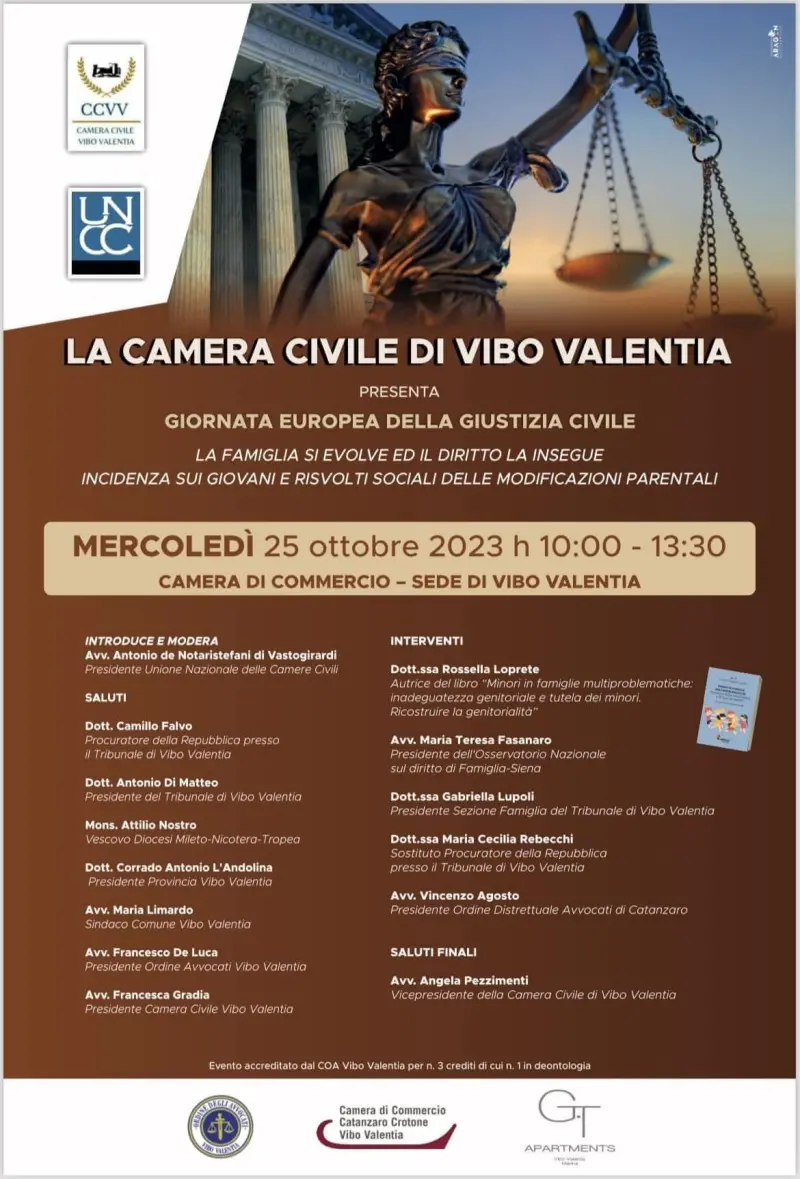 “Il concetto di famiglia si evolve e il Diritto la insegue. Incidenza sui giovani e risvolti sociali delle modificazioni parentali”. Questo è il tema corposo dell’evento che avrà luogo mercoledì 25 ottobre alle ore 10:00 all’interno della sede della Camera di Commercio di Vibo Valentia. A introdurre e moderare i lavori sarà l’avvocato Antonio de Notaristefani di Vastogirardi, presidente Unione nazionale delle Camere civili. Ospiti dell’appuntamento saranno il procuratore Camillo Falvo, il presidente del Tribunale Antonino Di Matteo, il presidente della Provincia Corrado L’Andolina, il sindaco Maria Limardo, il presidente dell’Ordine degli avvocati di Vibo Francesco De Luca, il presidente della Camera civile di Vibo Francesca Gradia e il vescovo della Diocesi di Mileto-Nicotera-Tropea Attilio Nostro. Interverranno Rossella Loprete, autrice del libro “Minori in famiglie multiproblematiche: inadeguatezza genitoriale e tutela dei minori. Ricostruire la genitorialità”, l’avvocato Maria Teresa Fasanaro, presidente dell’Osservatorio nazionale sul Diritto di famiglia – Siena, Gabriella Lupoli, presidente della sezione Famiglia del Tribunale di Vibo, Maria Cecilia Rebecchi, sostituto procuratore presso il Tribunale di Vibo, l’avvocato Vincenzo Agosto, presidente distrettuale dell’Ordine delegati avvocati di Catanzaro. Chiuderà l’incontro l’avvocato Angela Pezzimenti, vicepresidente della Camera civile di Vibo.